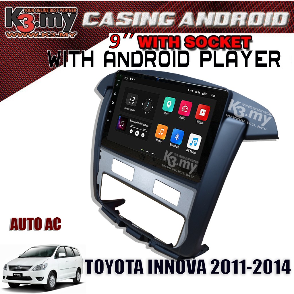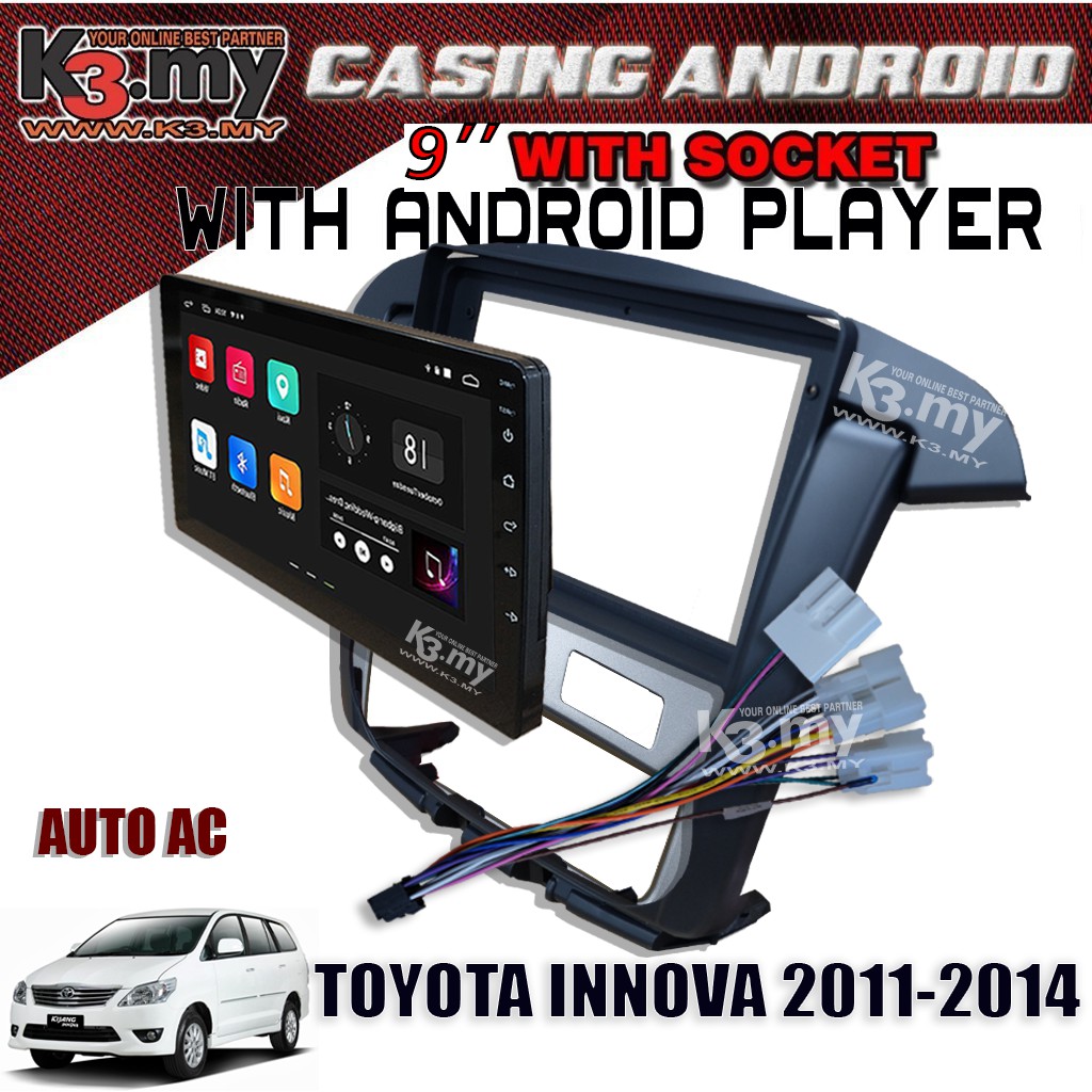Toyota Innova 2011-2014 9'' Android Player GPS Waze + Casing (Set) With Socket