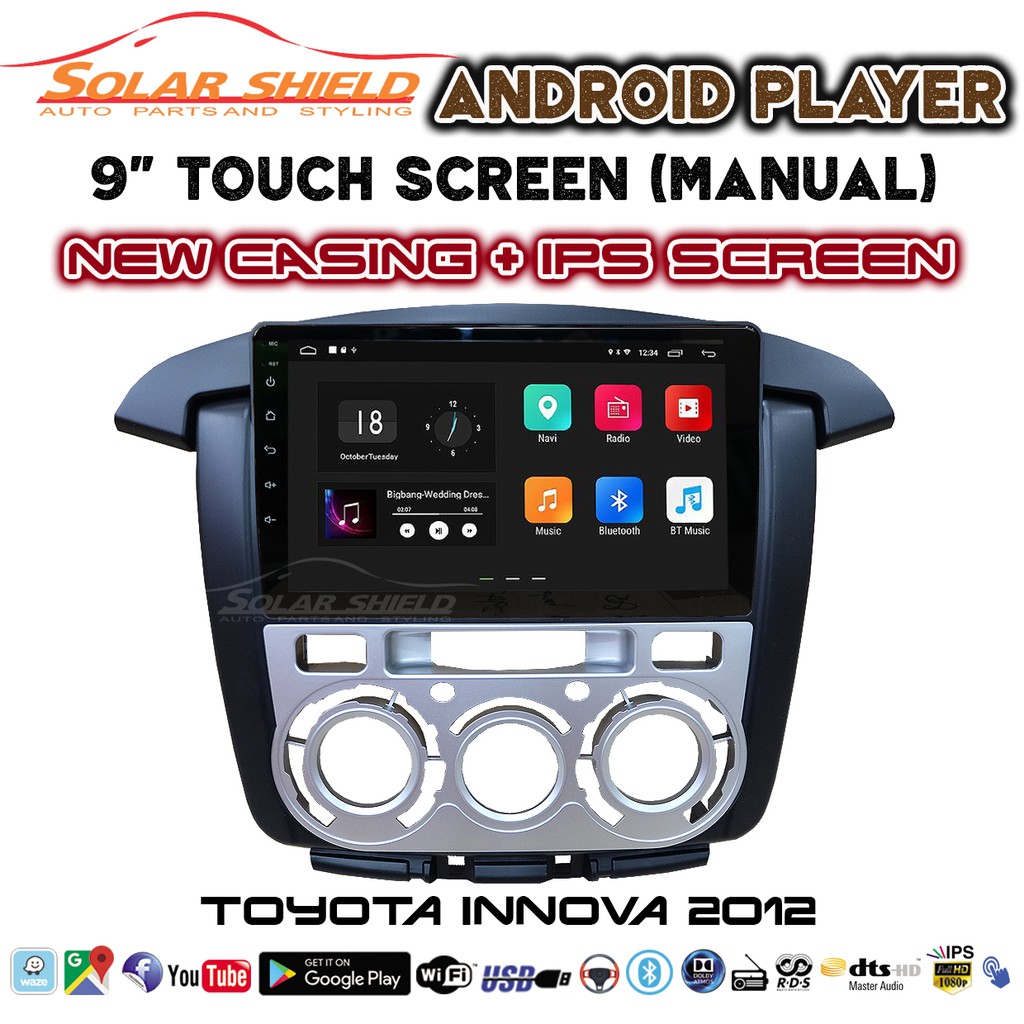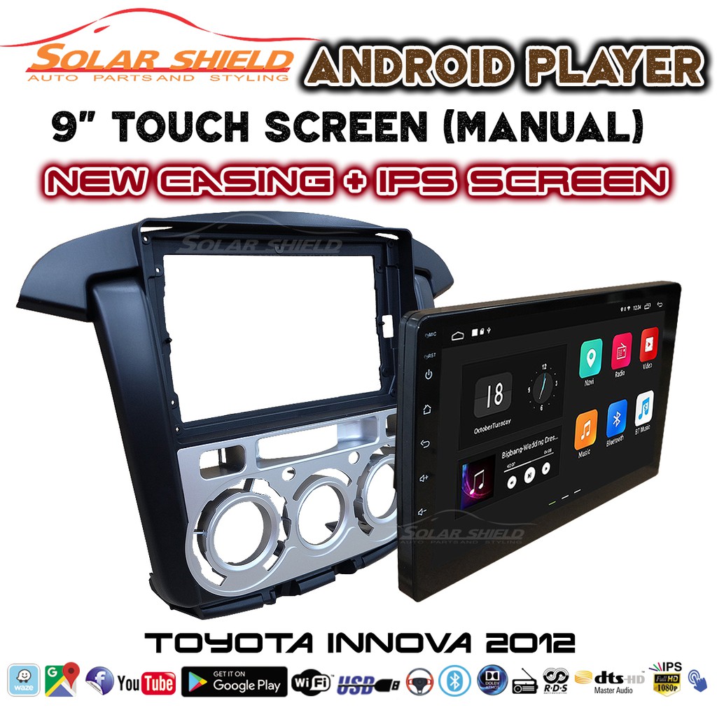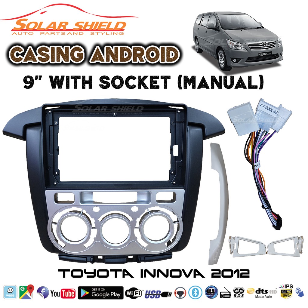 Toyota Innova 2012 Manual 9'' Android Player GPS Waze + Casing (Set) With Socket