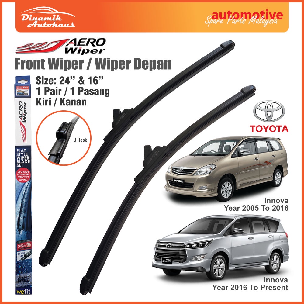 Toyota Innova Car Front Windscreen Flat Soft Wiper Size 24" & 16" Inch (1 Pair) AERO Wiper ARO2416