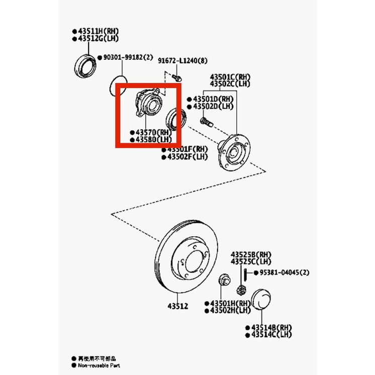 Toyota Original Front Wheel Bearing Lh/Rh Land Cruiser Lx570 Urj202/Urj201