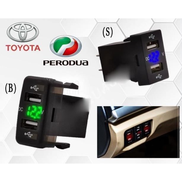 Toyota / Perodua Alza Myvi Dual Port USB Power Socket Charger Meter Adapter READYSTOCK