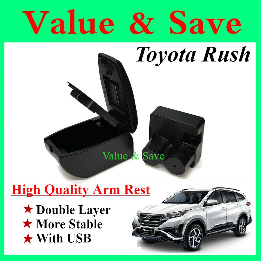 Toyota Rush 2019 - 2024 Armrest PREMIUM ARMREST Arm Rest with 4 USB Extension with BLACK Stitching Ready Stock