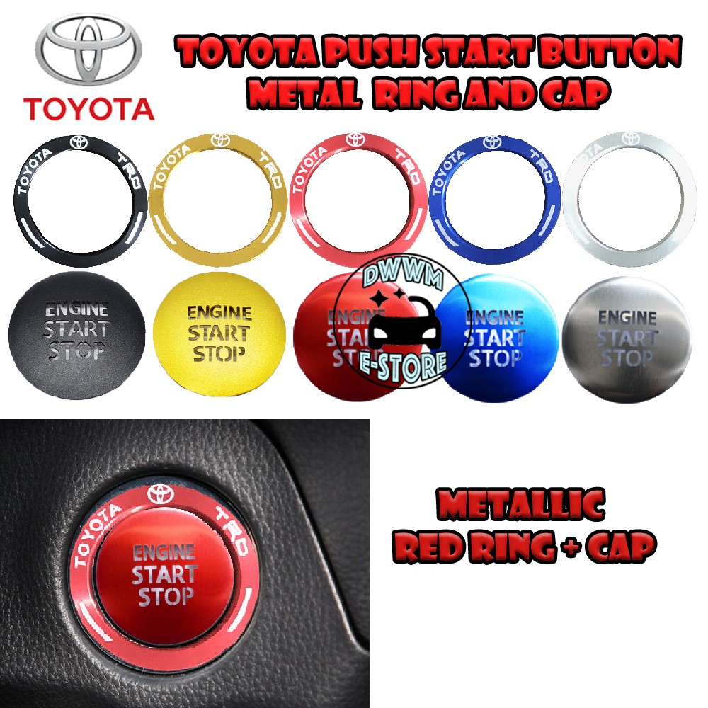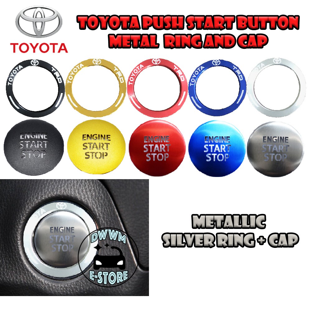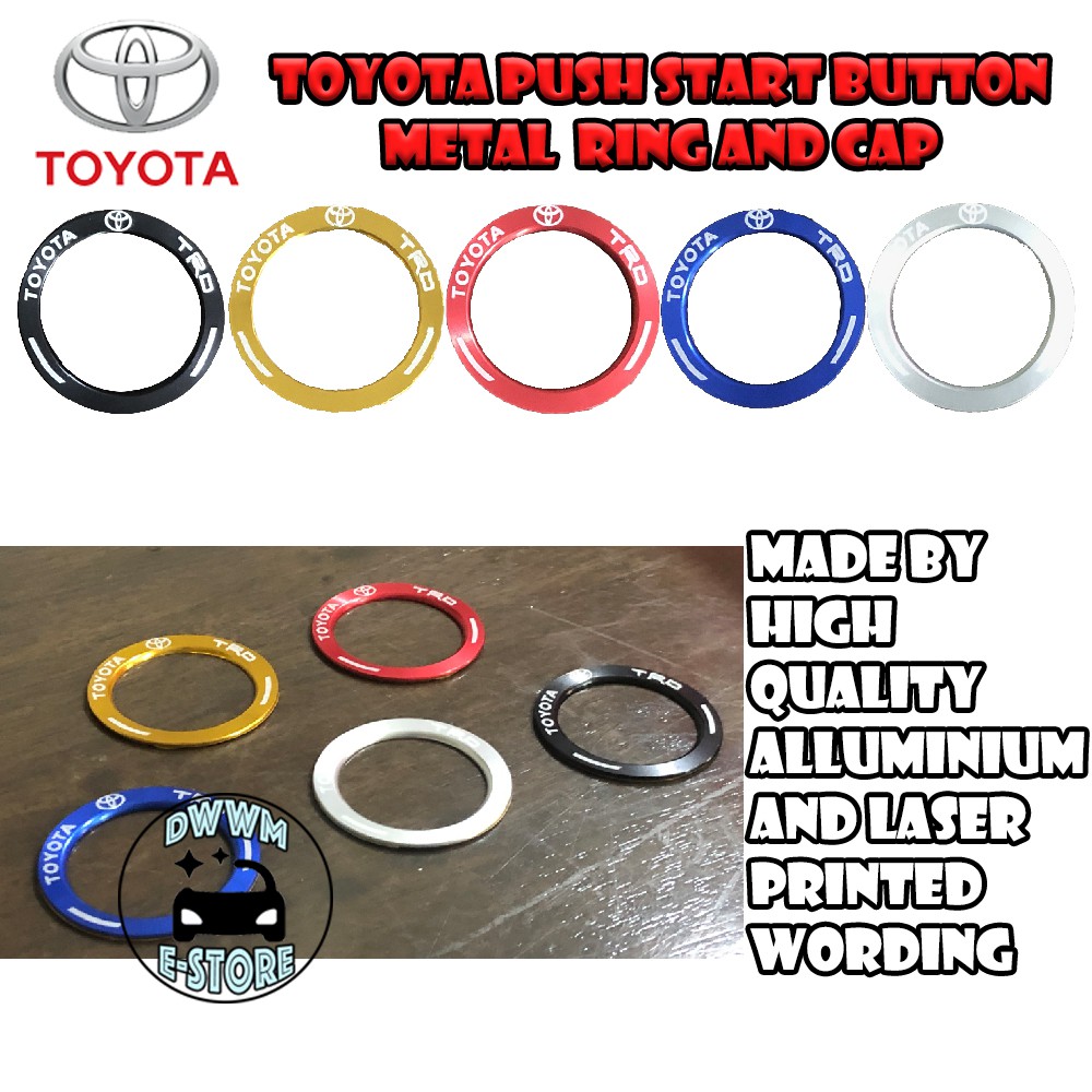Toyota TRD Power Push Start button Metal ring and Cap cover Transparent Wording aluminium for Vios Yaris Camry Altis CHR