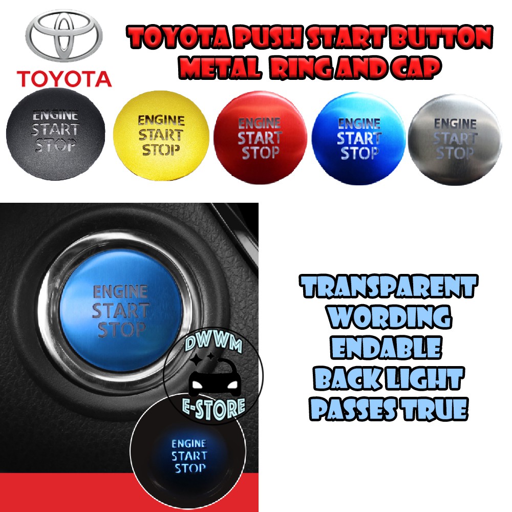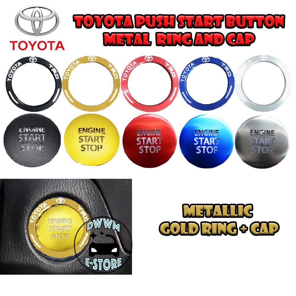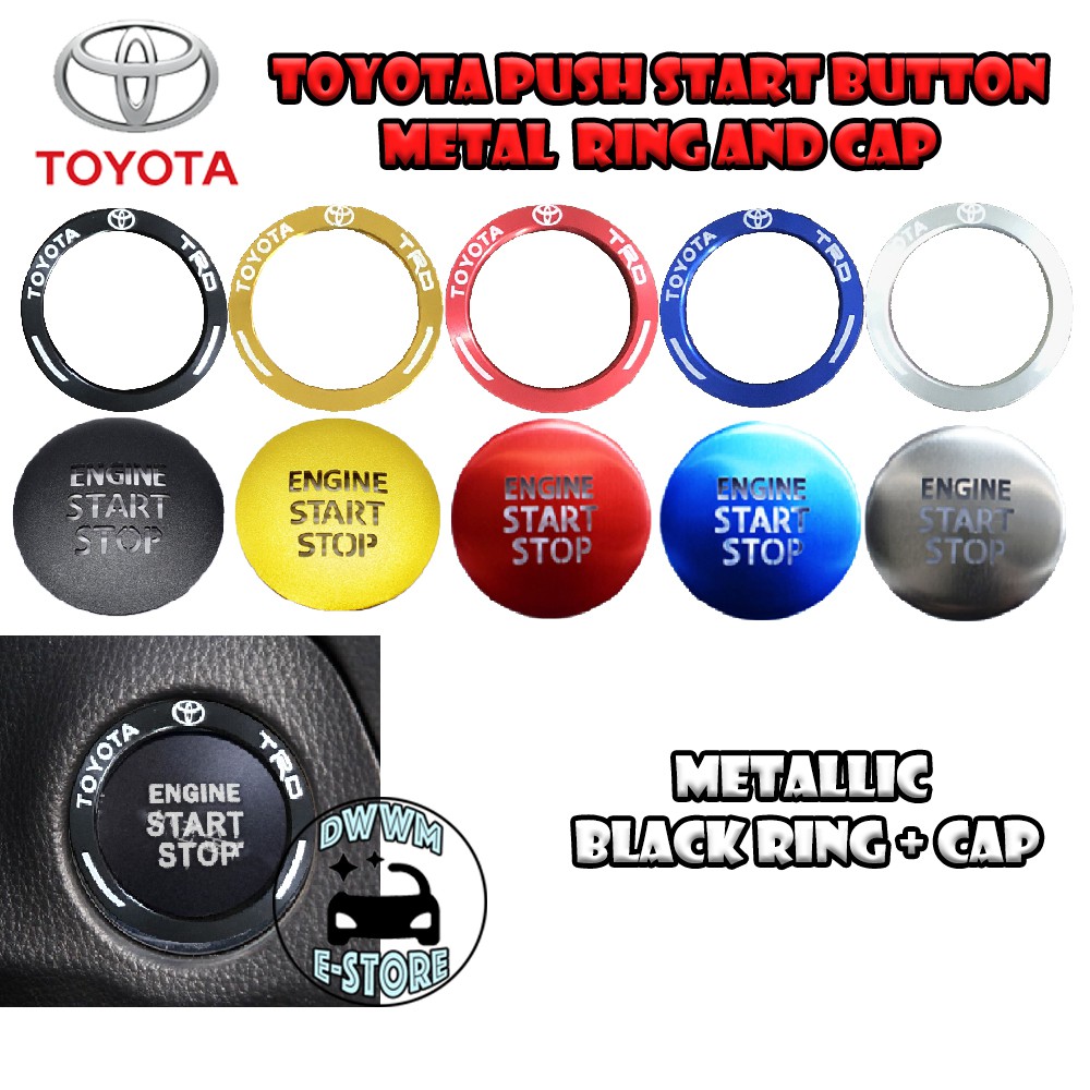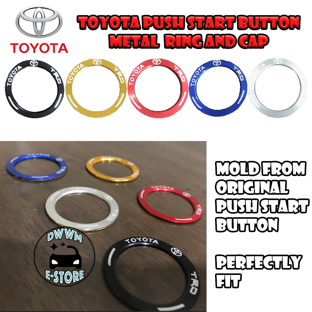 Toyota TRD Power Push Start button Metal ring and Cap cover Transparent Wording aluminium for Vios Yaris Camry Altis CHR