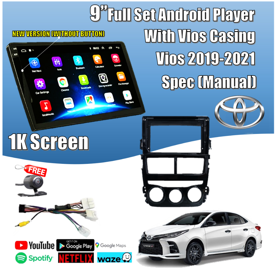 Toyota VIOS 2003-2021 9'' 10" Android Player Car Player IPS Screen 2Ram + 32GB With Vios Casing Waze GPS Wifi Youtube