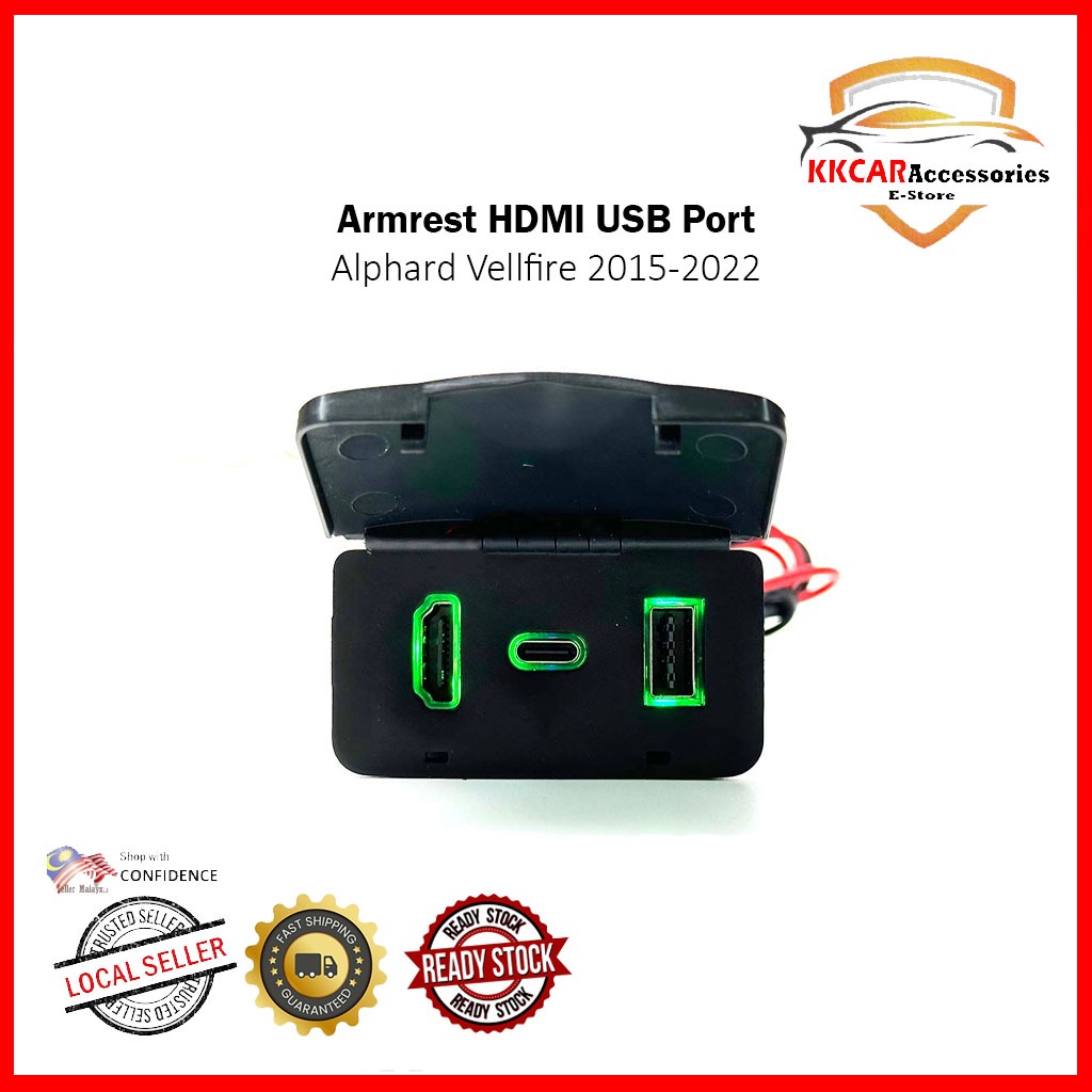 Toyota Vellfire Alphard ANH30 AGH30 HDMI Mini USB Charger Adaptor LED Armrest Fast Charging Type-C
