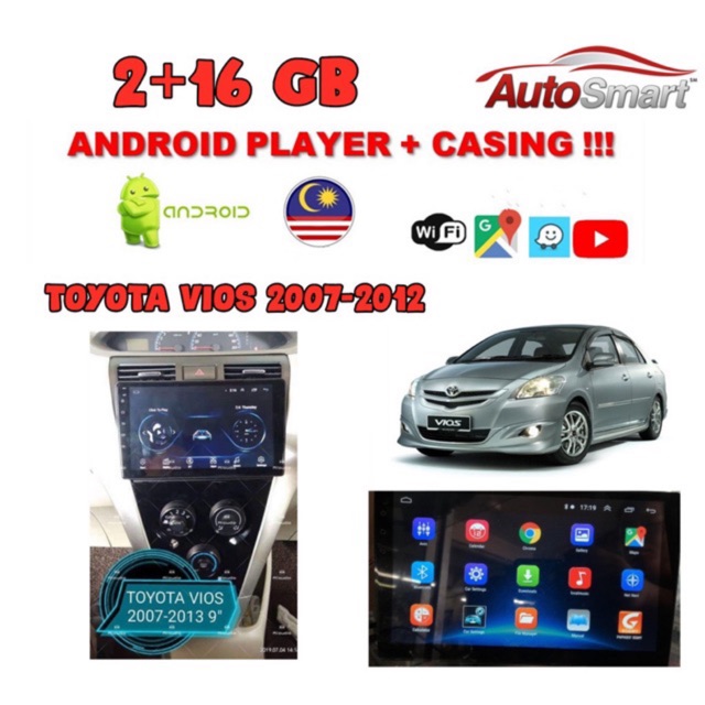 Toyota Vios 2007-2012 2+32G 9 INCH 2.5D Android Player With Casing
