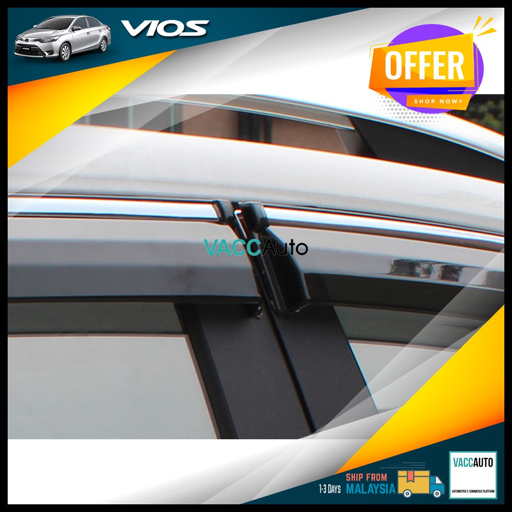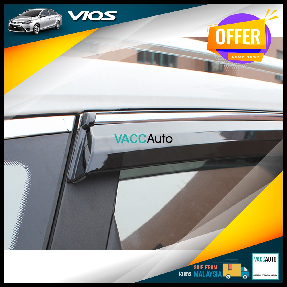 Toyota Vios Door Visor With Steel Chrome Lining Window Shield Deflector For Vios NCP93 NCP150 (2007-2018) VACC Auto