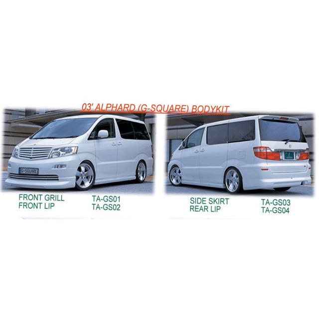 Toyota alphard anh10 2002 2003 2004 2005 gsquare G square bodykit body kit front side rear skirt lip skirts anh 10