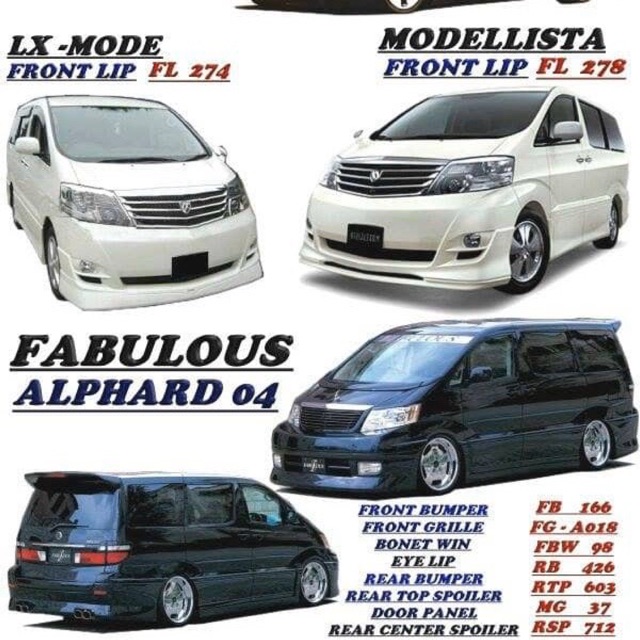 Toyota alphard anh10 2003 2004 2005 fabulous vip bodykit body kit front rear bumper side skirt door panel spoiler grill