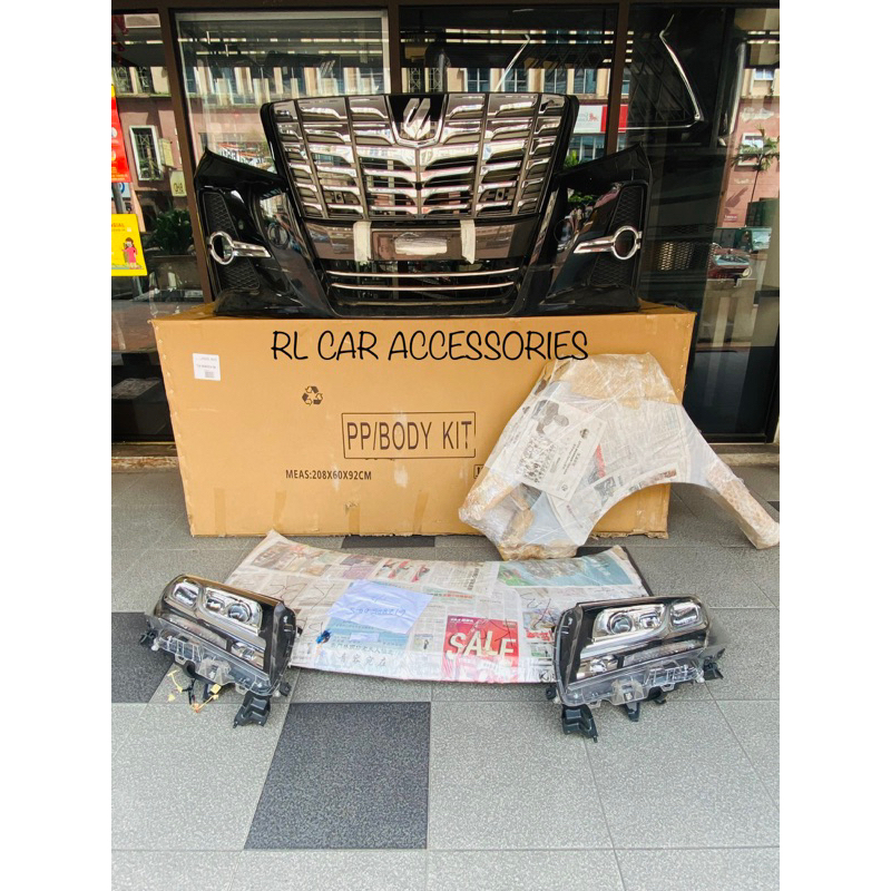 Toyota alphard anh10 2003 2007 convert agh30 2015 bodykit body kit front rear bumper head lamp led grill grille bonnet