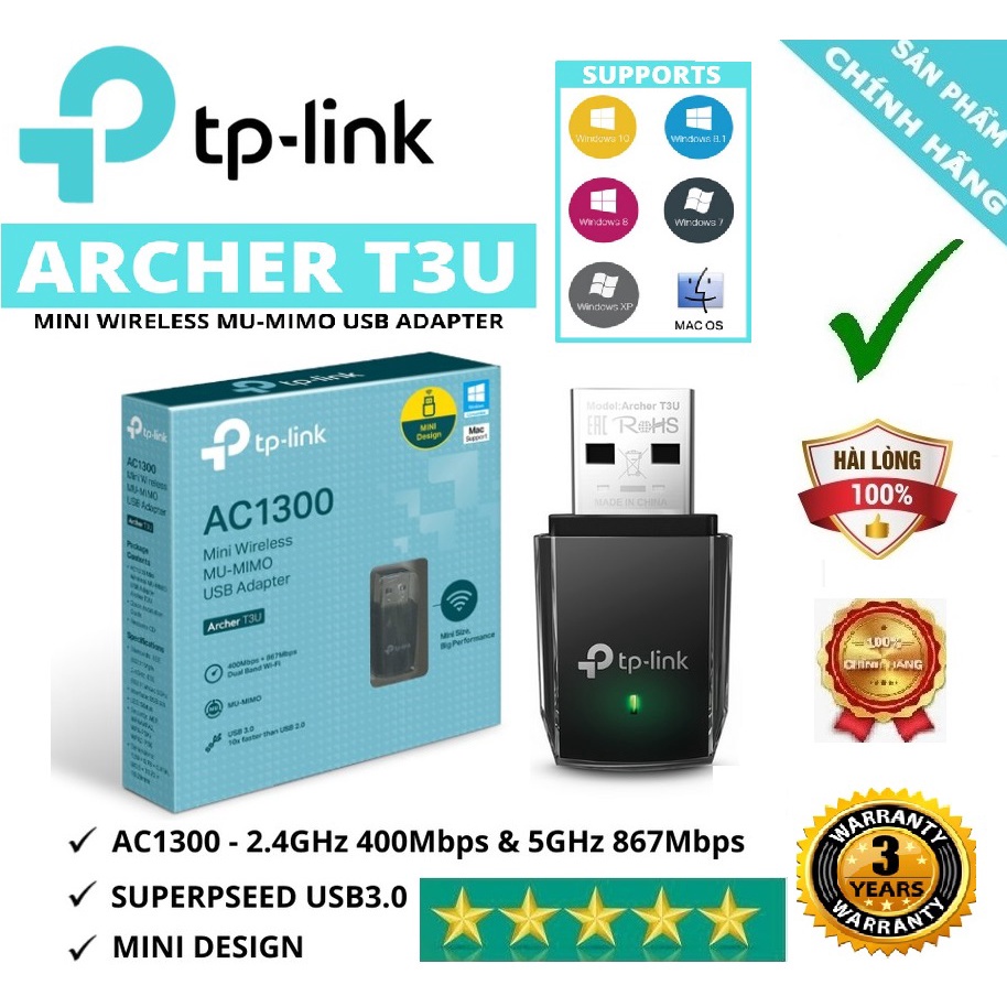 TP-Link Archer T3U Plus AC1300 USB Wireless Network Card