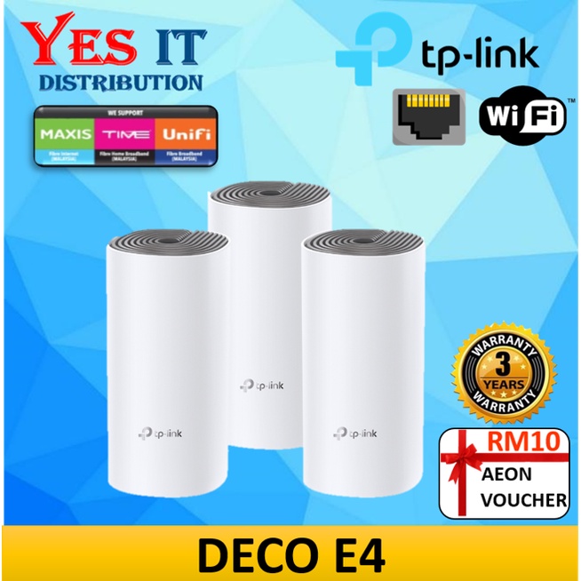 Tp-link Deco E4 AC1200 Whole Home Mesh Wi-Fi System Wireless Range Extender (3 pack)--FREE RM10 AEON VOUCHER