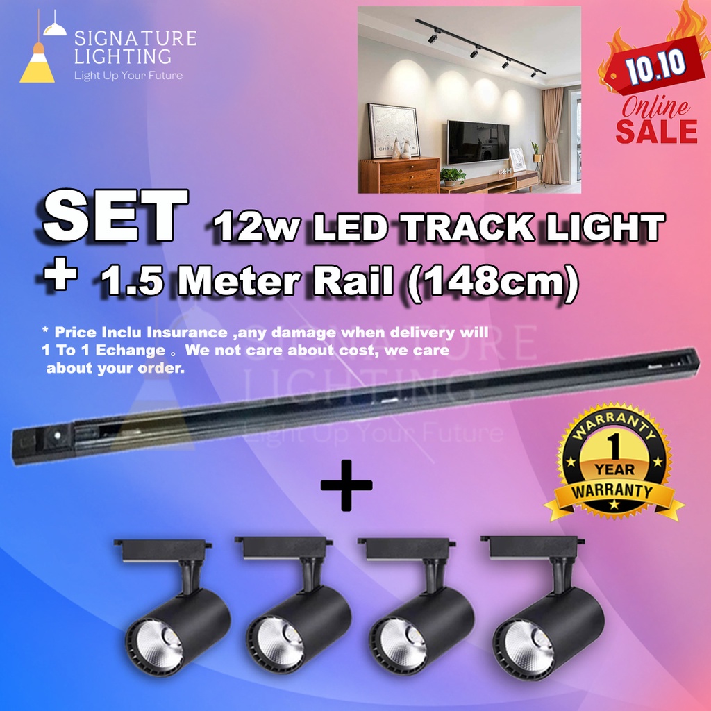Track light [ Set ] Led With 1.5 (150cm)Meter Rail Track + 4 Led Track Light 12w / Lampu Track Led +1.5meter Track