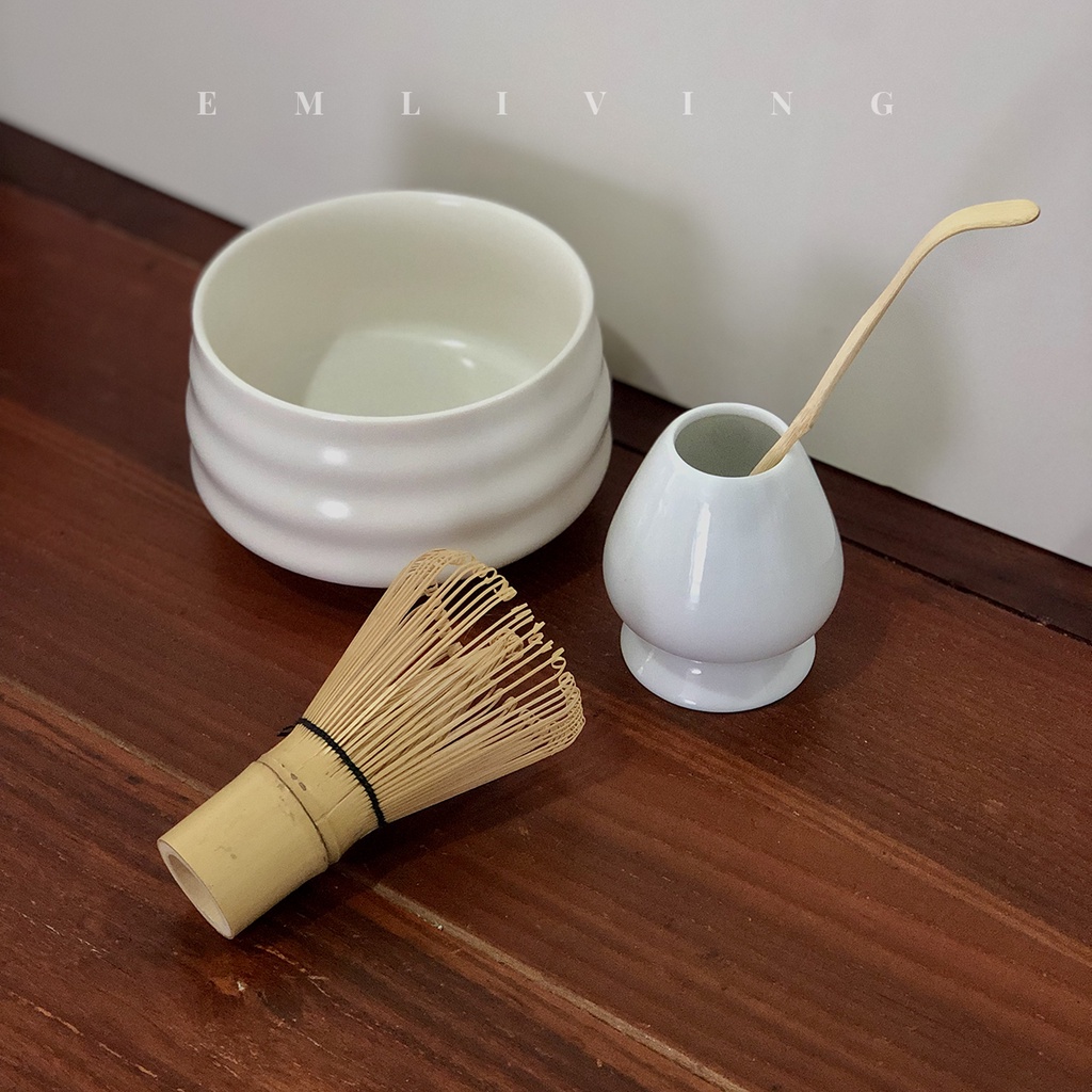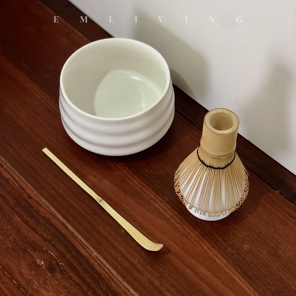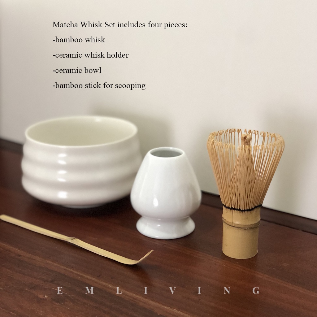 ✨EM Living✨ Traditional Bamboo Matcha Whisk Set 4 pieces with Matcha Tea Bowl Ceremonial Matcha