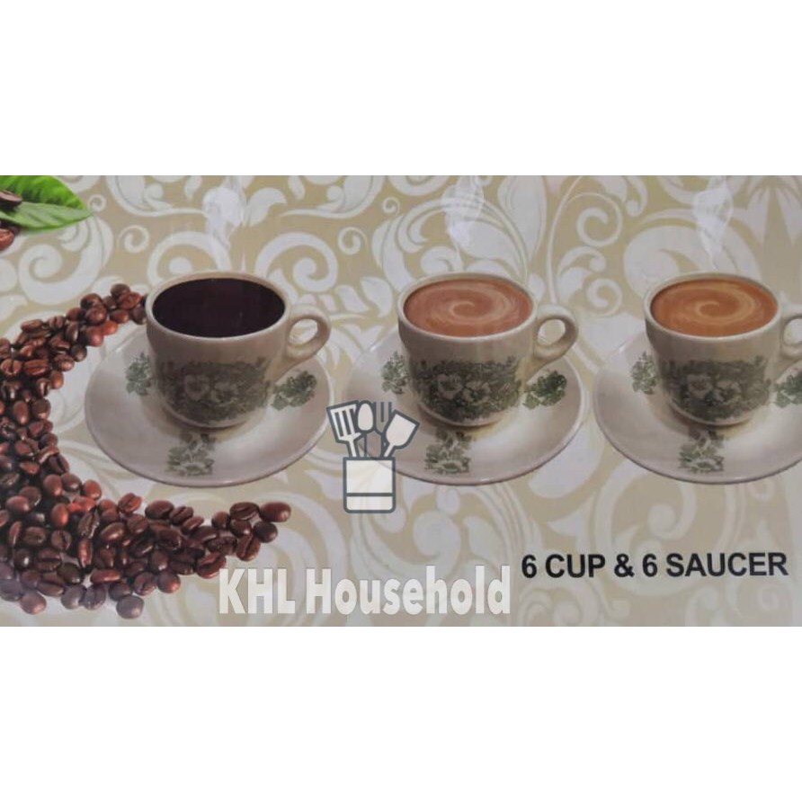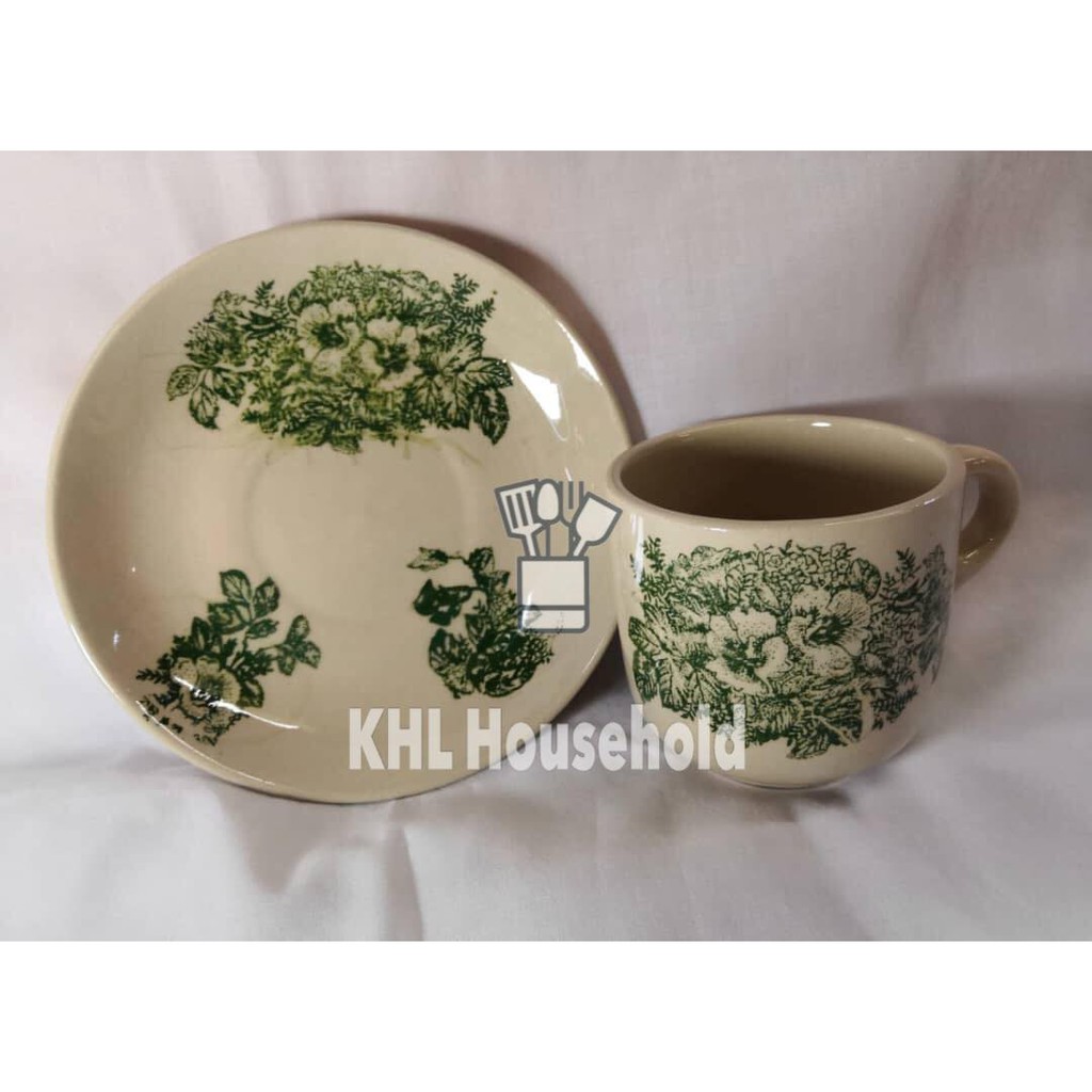 Traditional Chinese Floral Coffee Kopi / Vintage Kopitiam Green Flower Tea Cup & Sauces / Set Cawan Kopitiam (6sets)