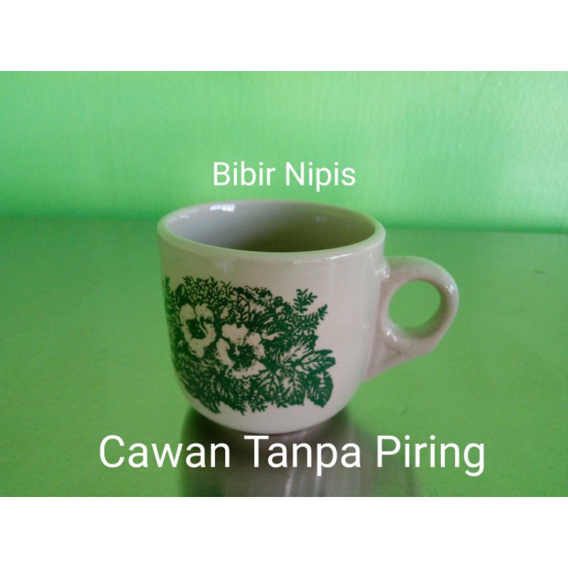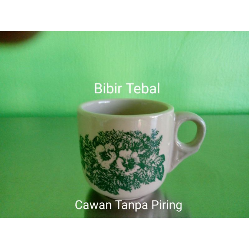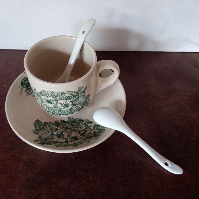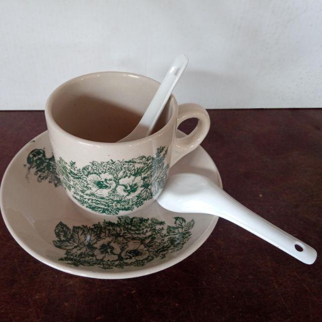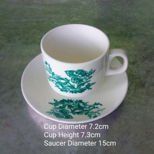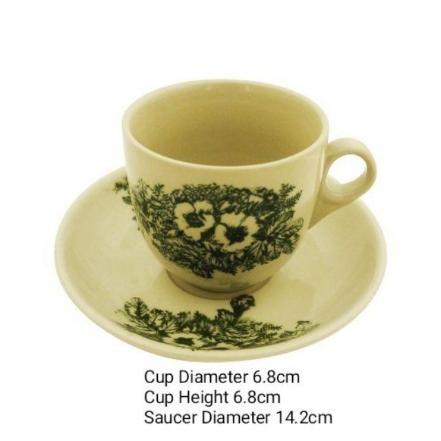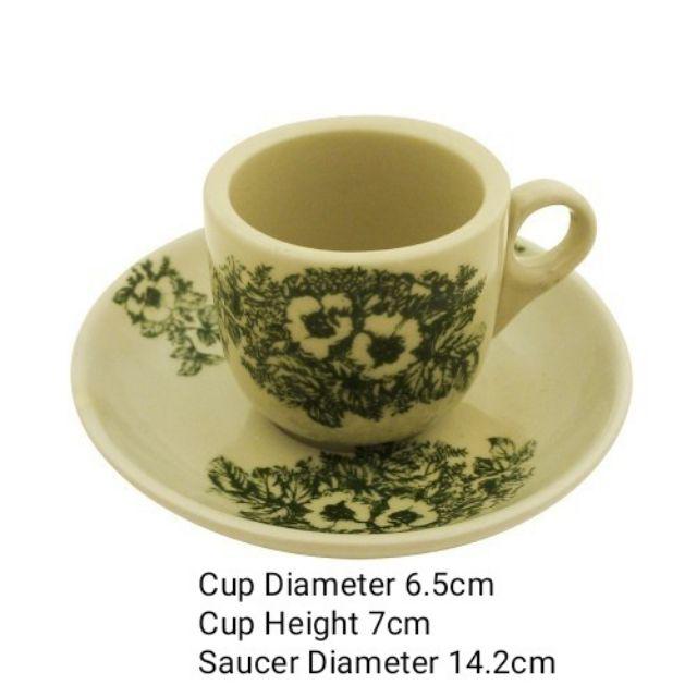 Traditional Kopitiam Green Flower Coffee Cup & Saucer/Cawan Kopitiam Tradisional