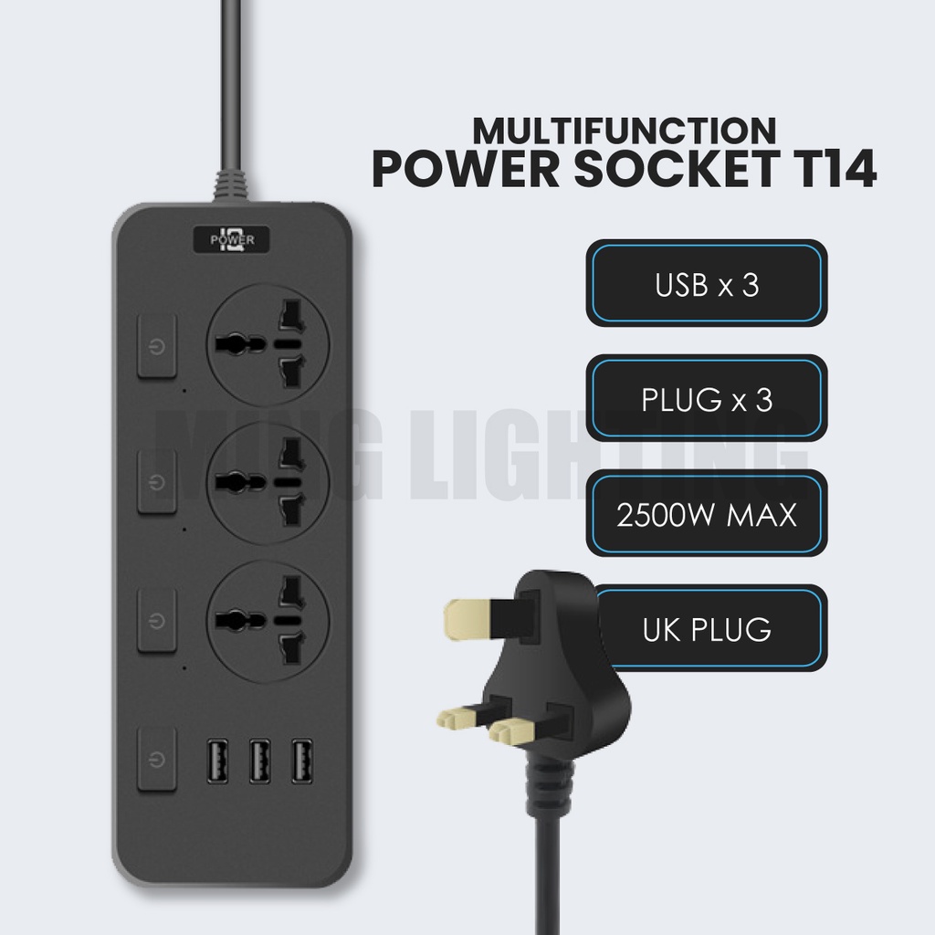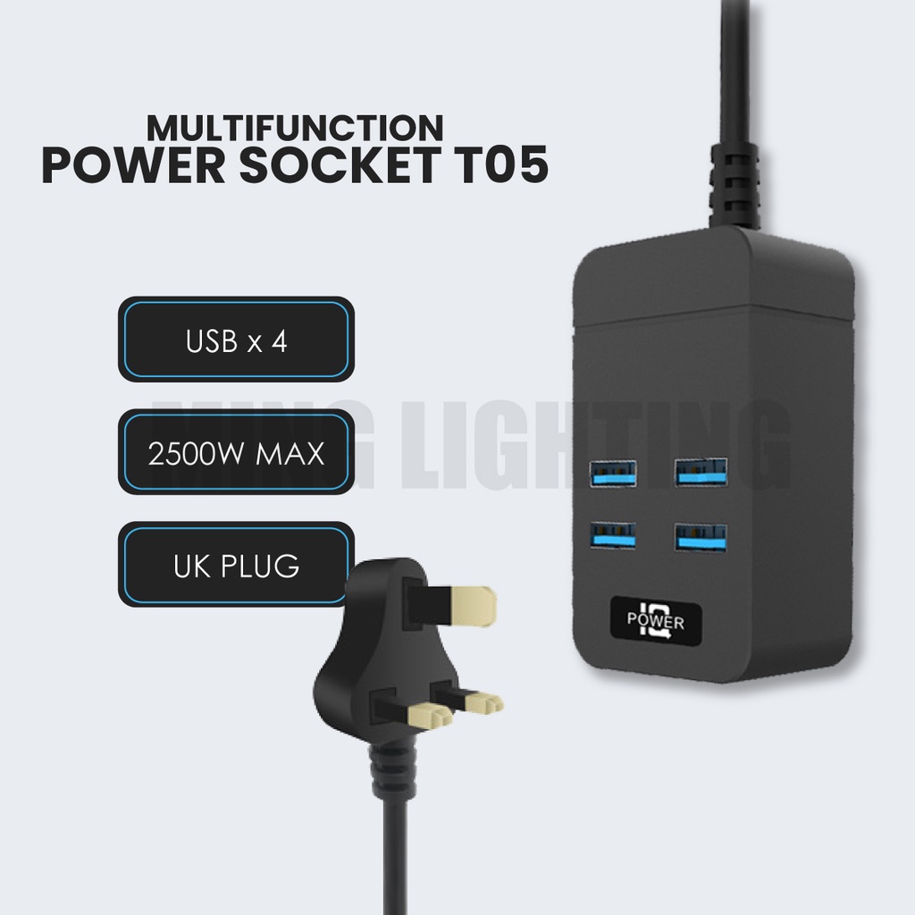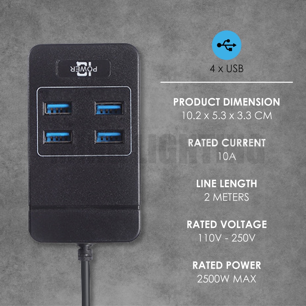 Trailing Socket USB Adapter 2M UK 3 Pin Plug Extension Soket Multiple Universal Adaptor Converter Charger On Off Switch