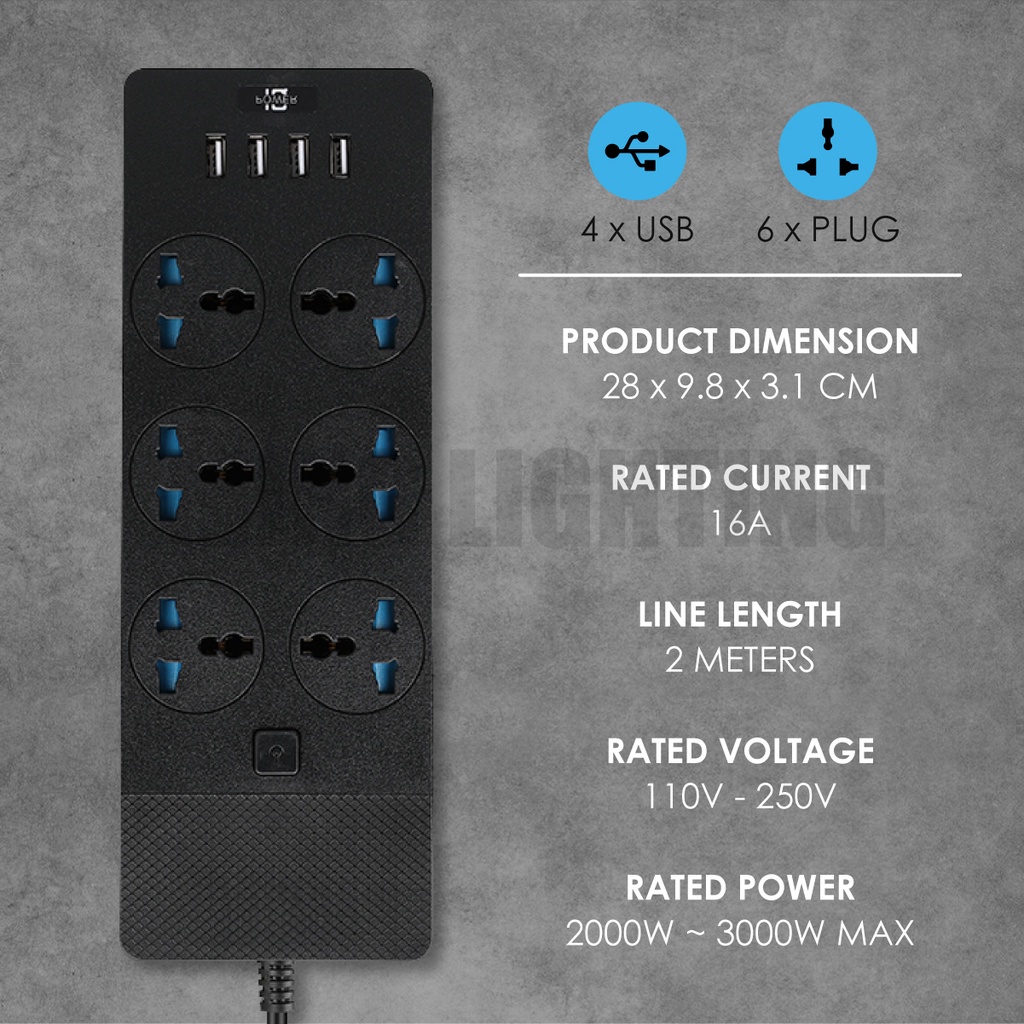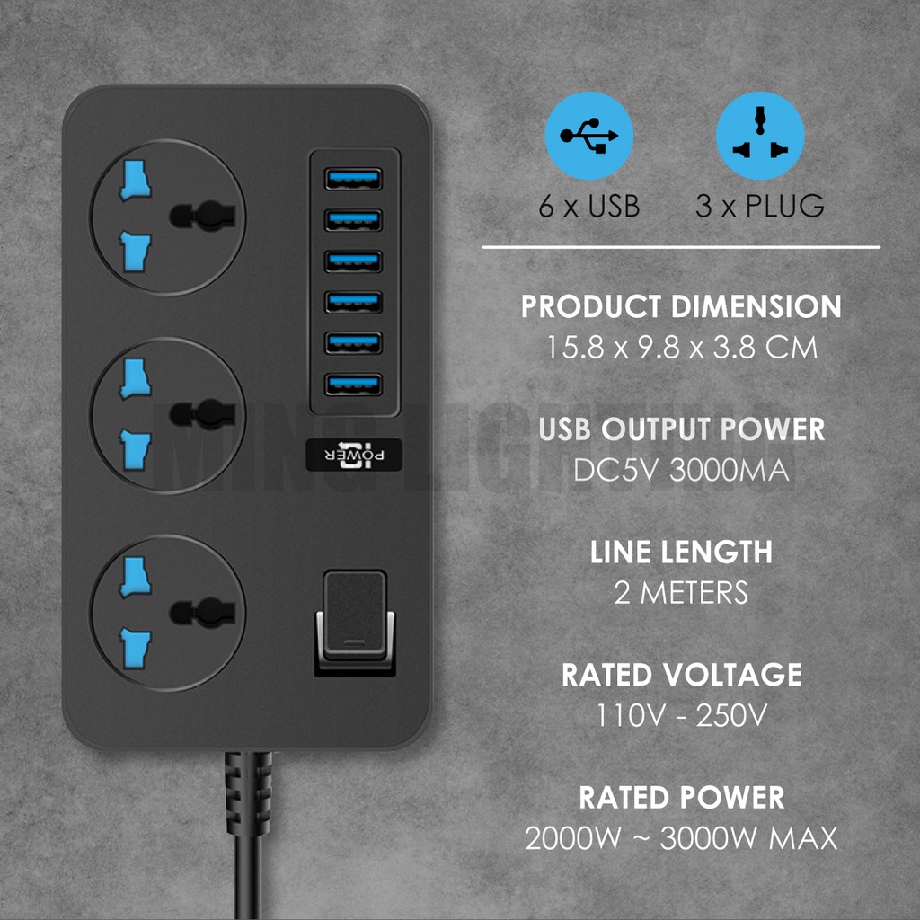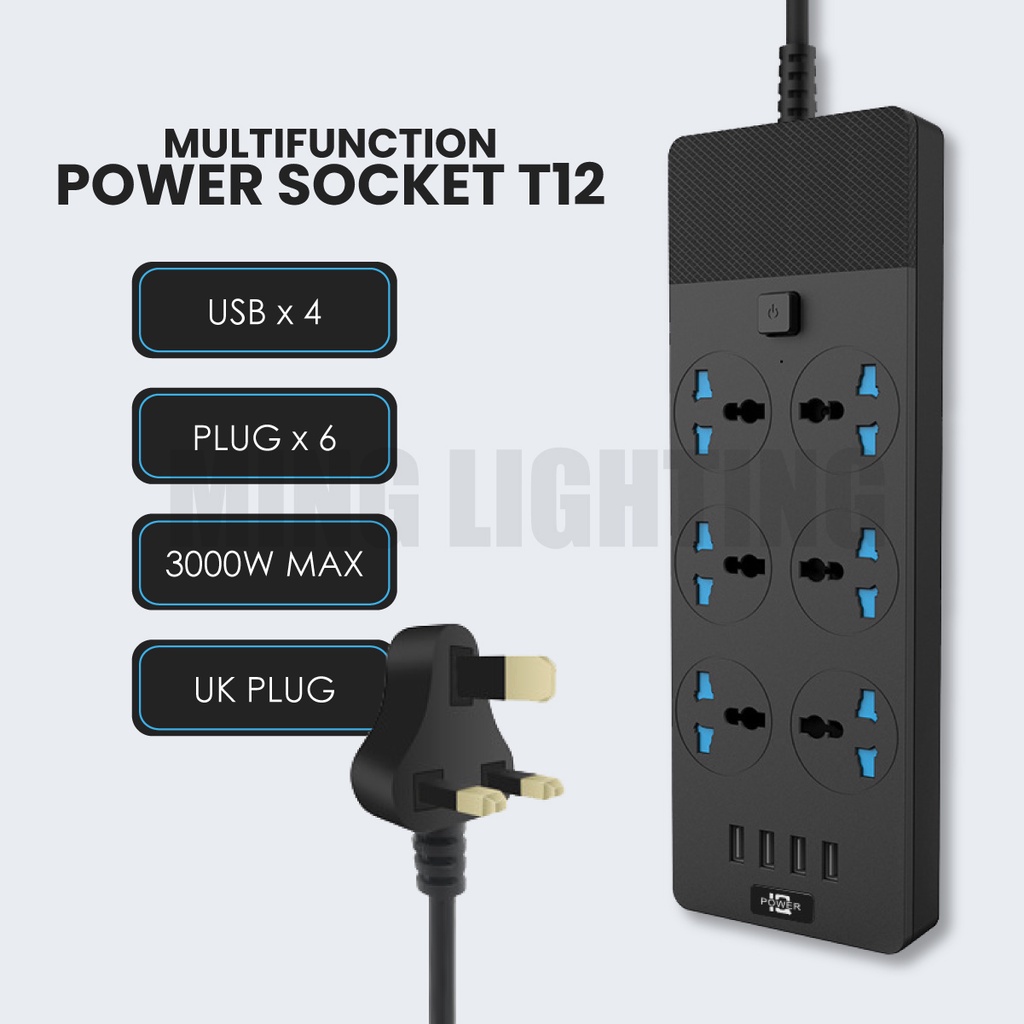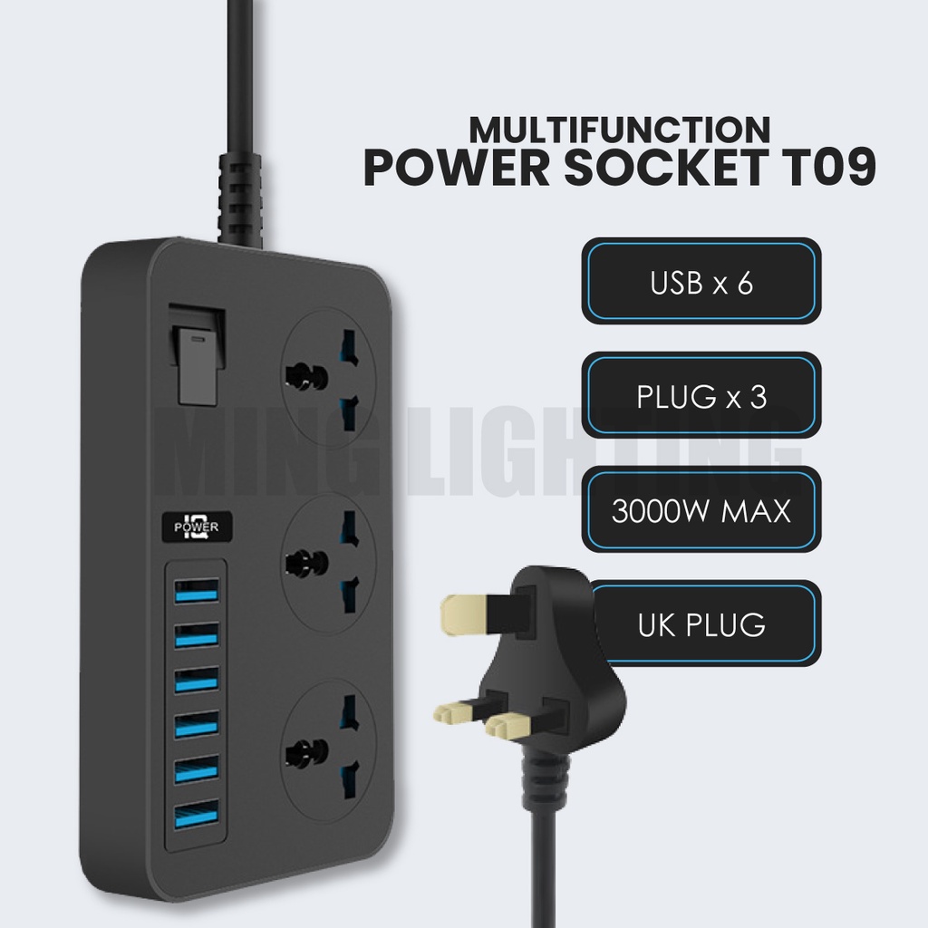 Trailing Socket USB Adapter 2M UK 3 Pin Plug Extension Soket Multiple Universal Adaptor Converter Charger On Off Switch