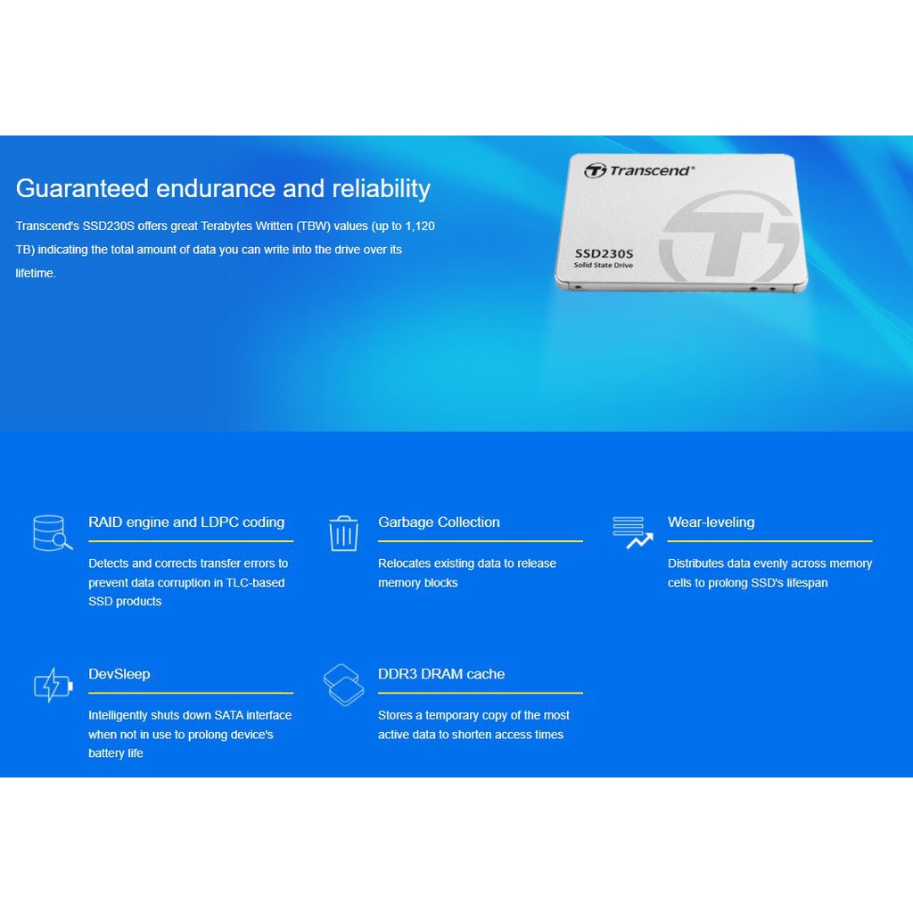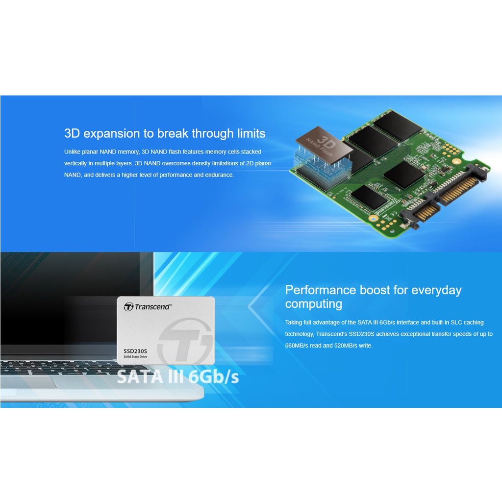Transcend 230S SSD SATA III 6Gb/s with DRAM Cache - 128GB/256GB/512GB/1TB/2TB/4TB