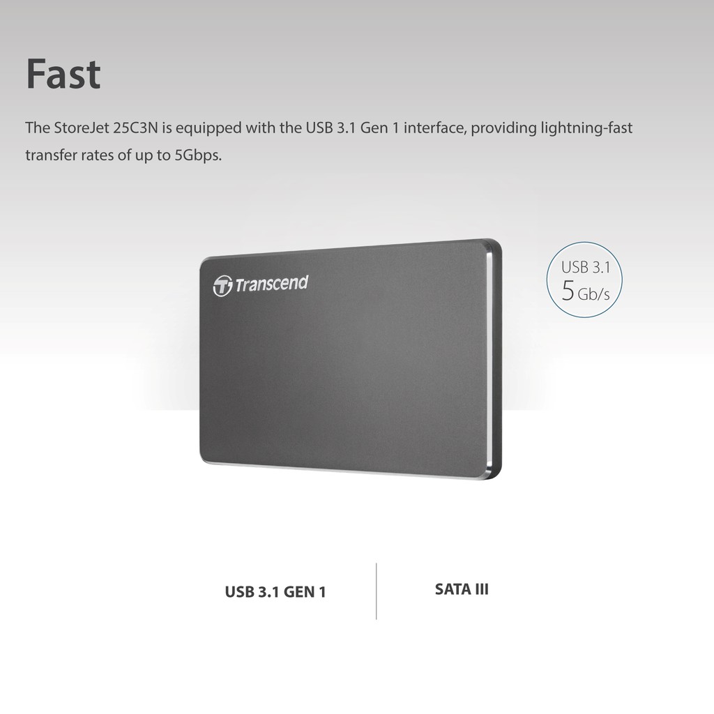 Transcend StoreJet 25C3N External HDD USB 3.1 Ultra Slim (1TB/2TB)