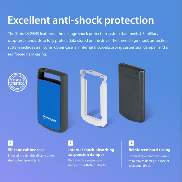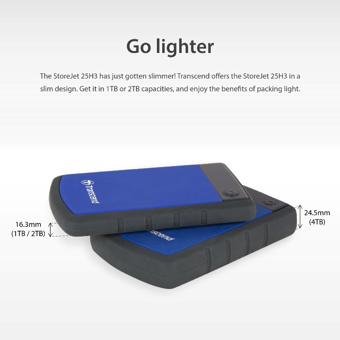 Transcend Storejet 25H3 External HDD USB 3.1 Rugged (1TB/2TB/4TB)