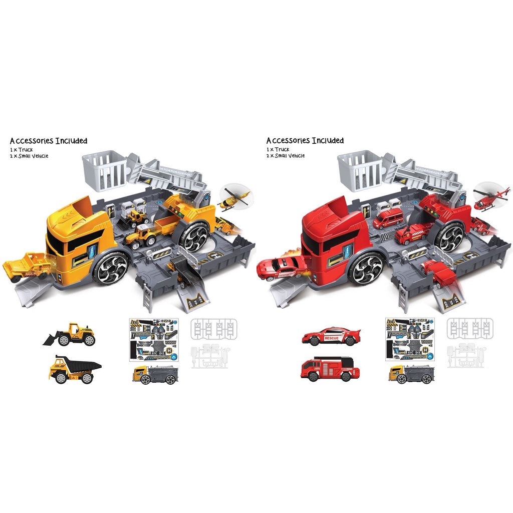 Transformation Construction Fire Engine Truck Kids Toy Vehicle Set Parking Lot/Trak Parking Lot Boleh Transform