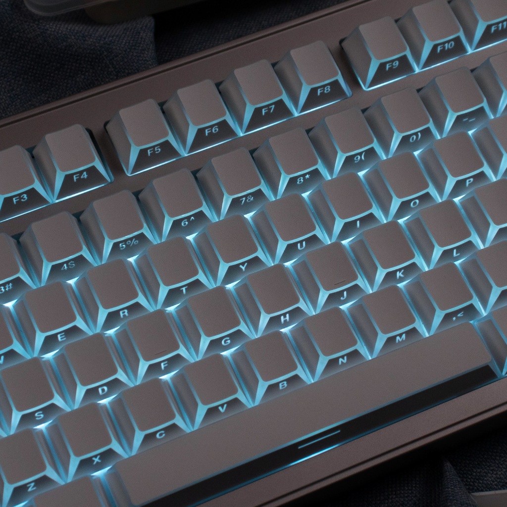 Translucent angled edges Shine through folded shadow Prism Keycaps White PBT Double shot Cherry profile Keycap set for Mechanical Keyboard