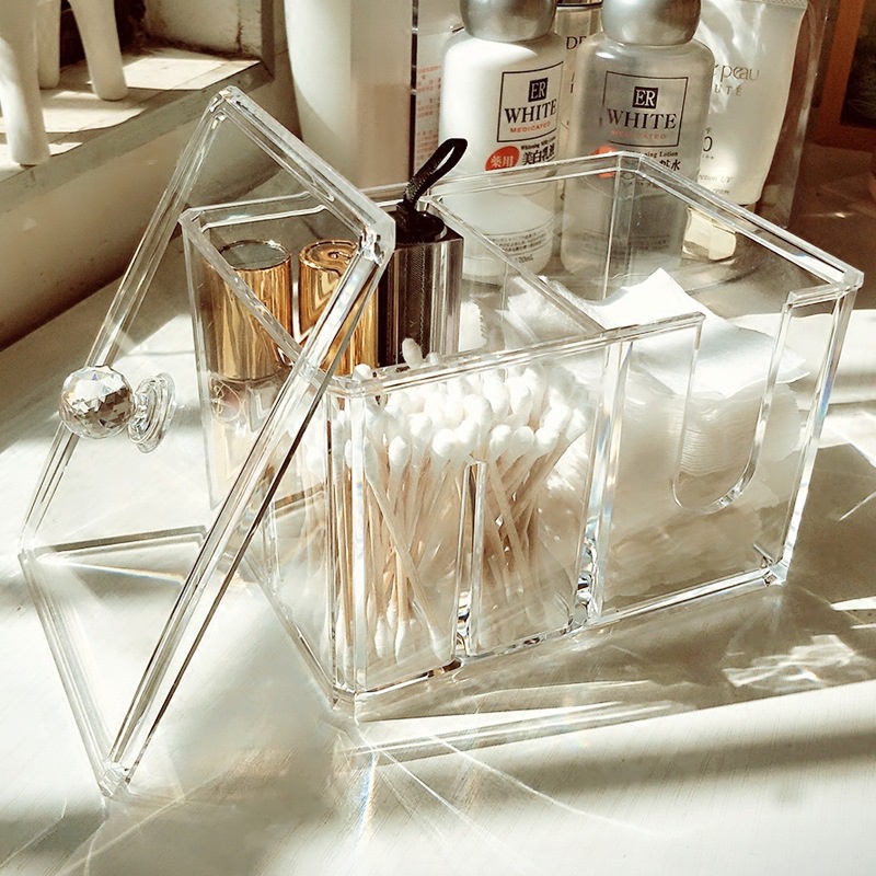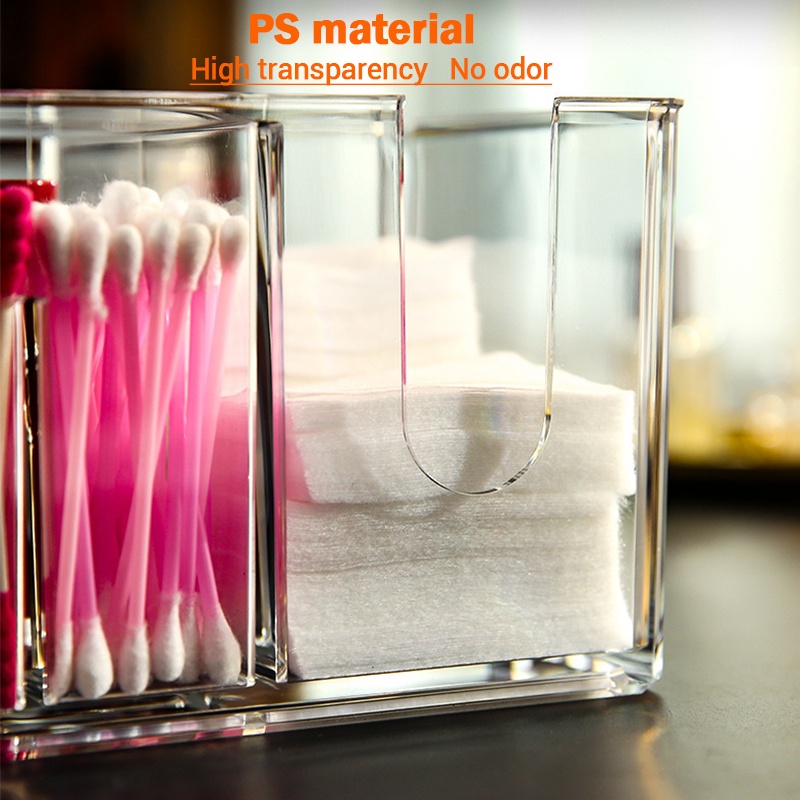 Transparent Acrylic Make Up Cotton Pad Holder 4IN1 Makeup Box Portable Container Cotton Swab Cotton Pad Storage