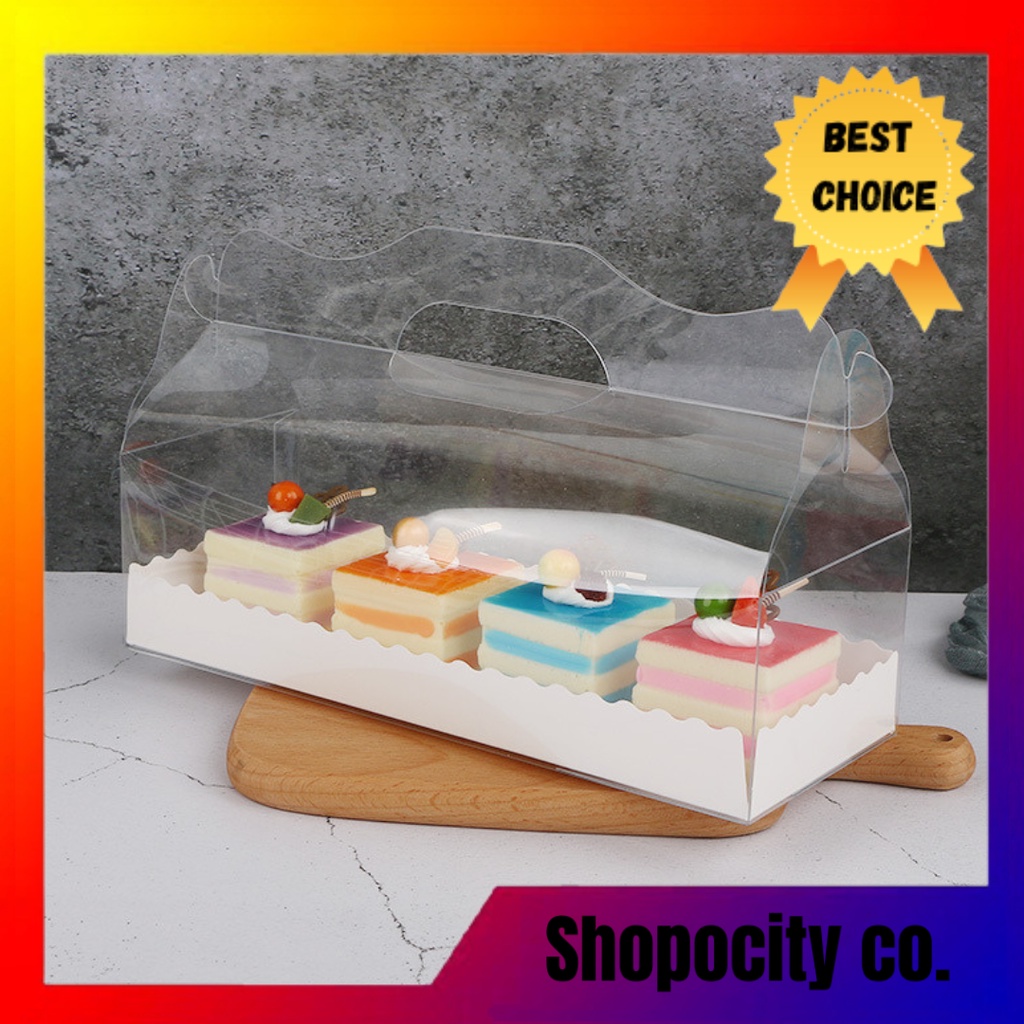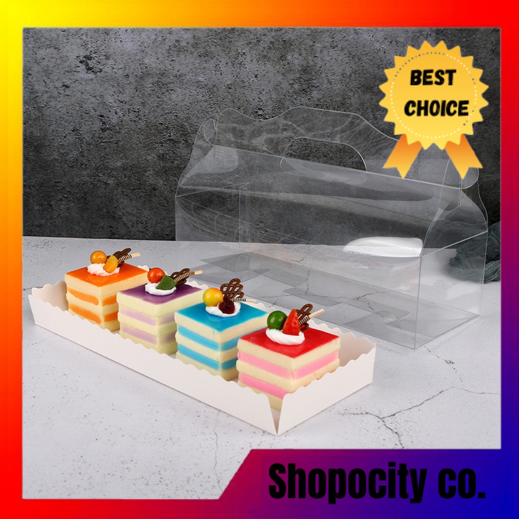 Transparent Cake Box with Handle Portable Pastry Slice Cake Packaging Box / Kuih Box Free Base Tray