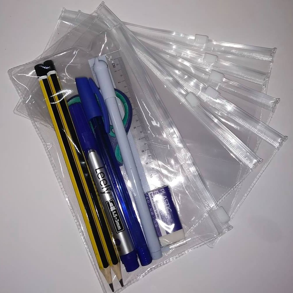 Transparent Clear Pencil Case Box School Exam Office Simple Small A6 Size Zipper Waterproof Lut Sinar Student