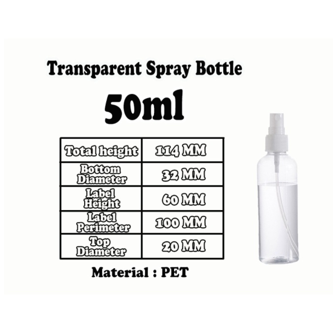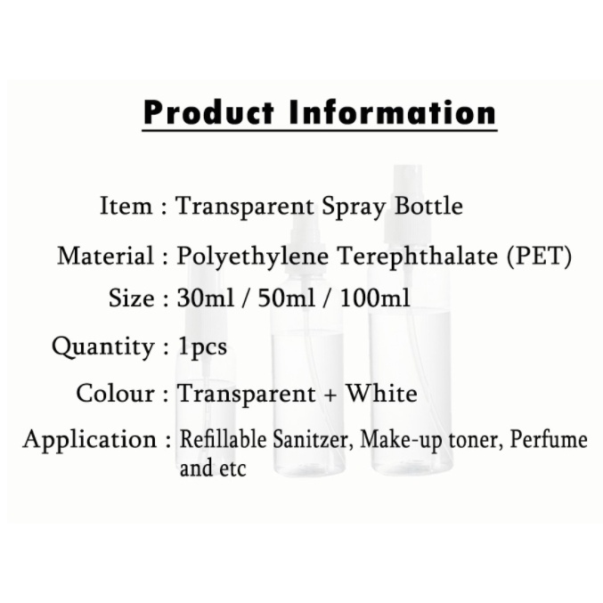 Transparent Empty Spray Bottles 50ml 100ml Plastic Refillable PET Travel Bottle Cosmetic Container