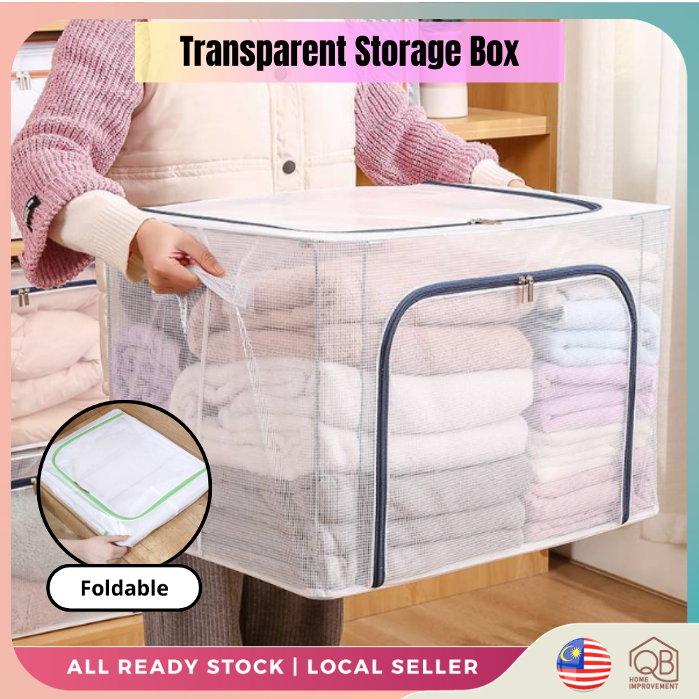 Transparent Foldable Storage Box Clothes Organizer Clothes Storage Oxford Organizers Storage Box With Steel Frame