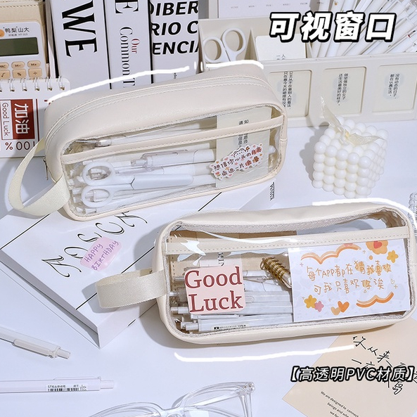 Transparent Large-Capacity Visible Pencil Case Simple ins Junior High School Students Stationery Box Niche Milk Series