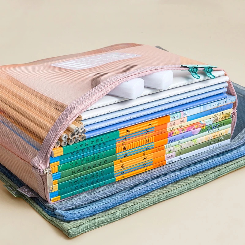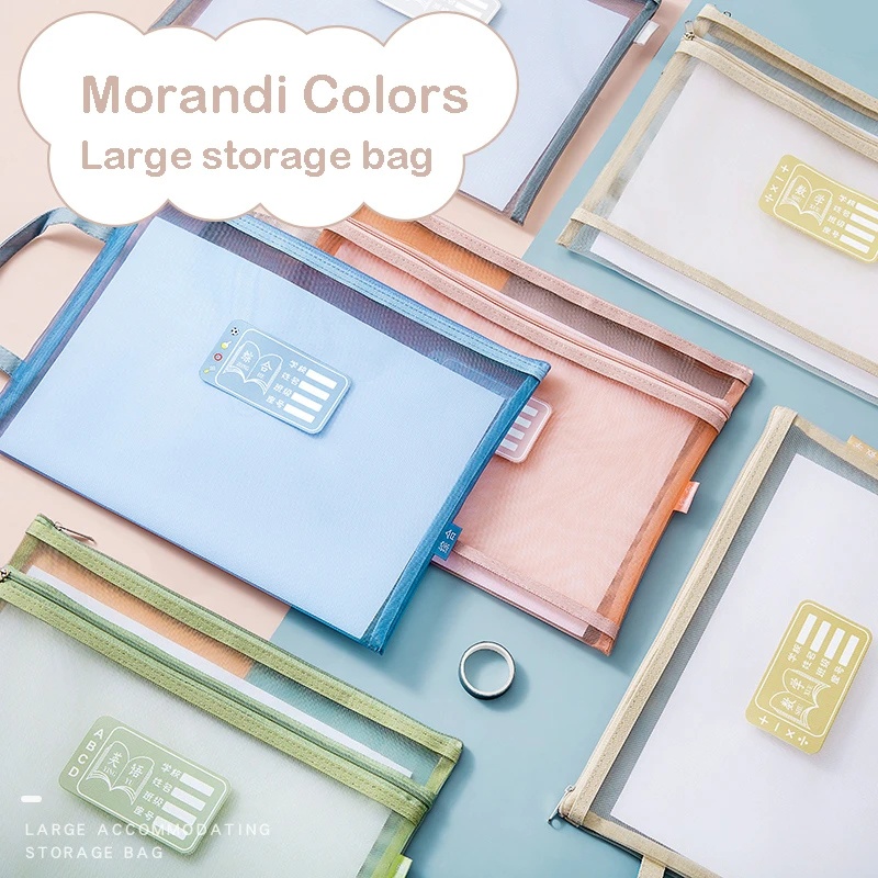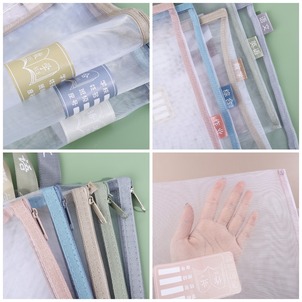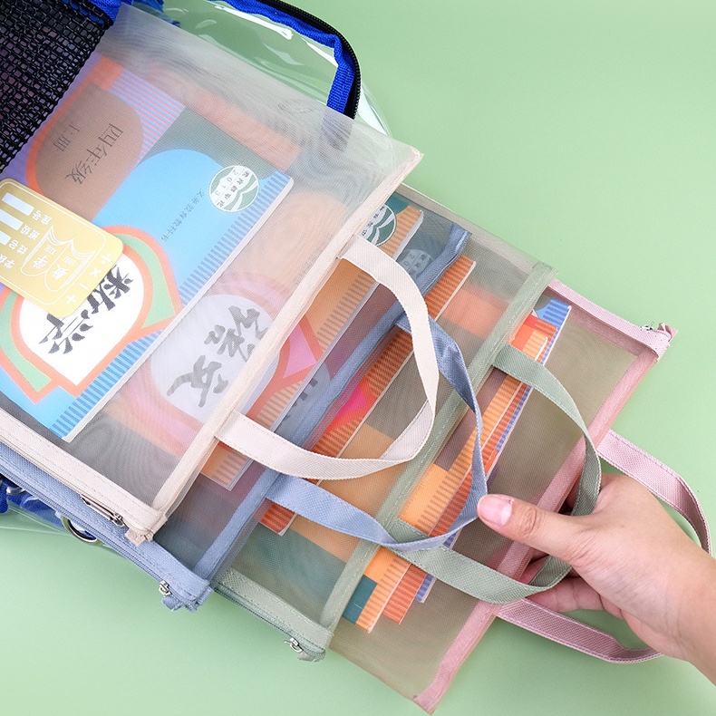 Transparent Mesh Document Bag Book Workbook Textbook Storage Bag Subject Classification Data A4 File Zipper Folder Filing Products Handbag Organizer Pocket Office School Supply