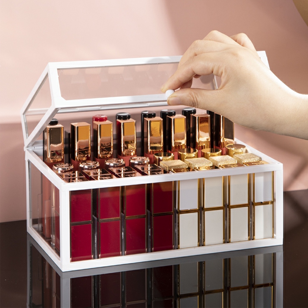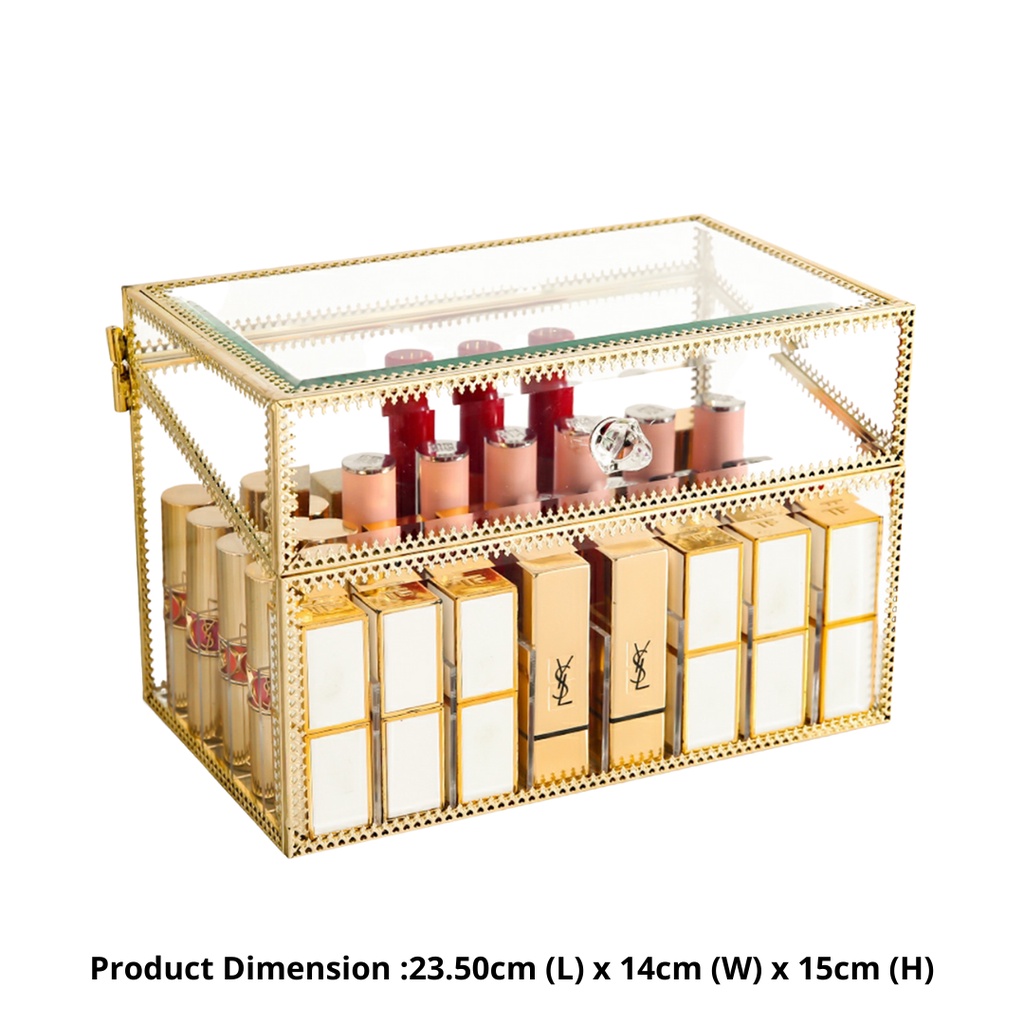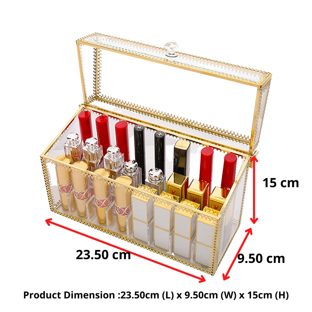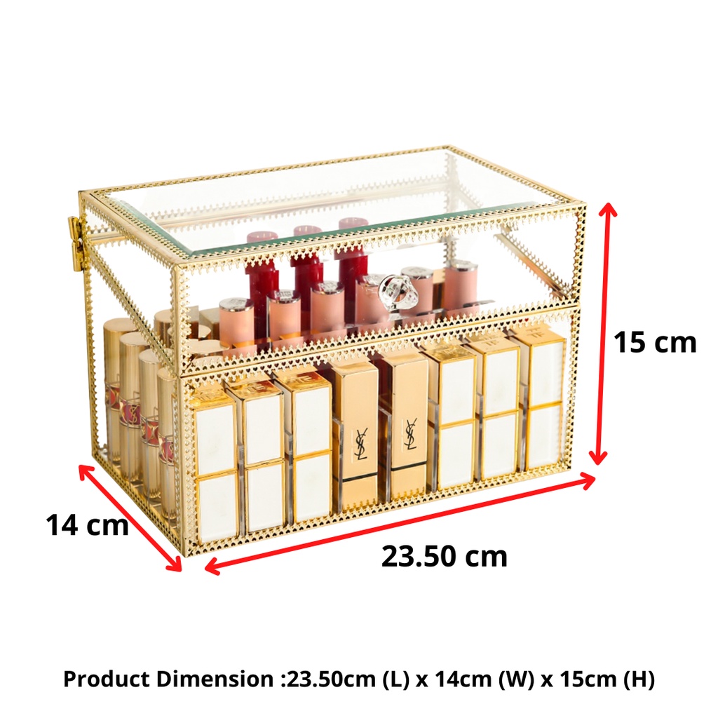 Transparent Organizer Lipstick Box with Lid Arcylic Glass Large Kotak Simpanan Gold White Color Storage Box Wonderful