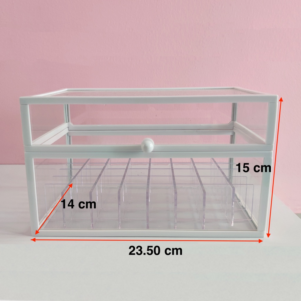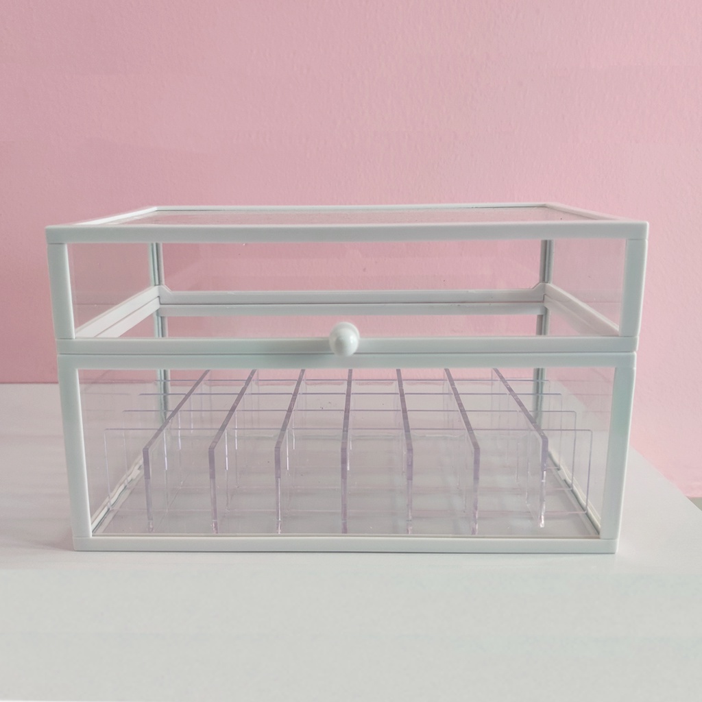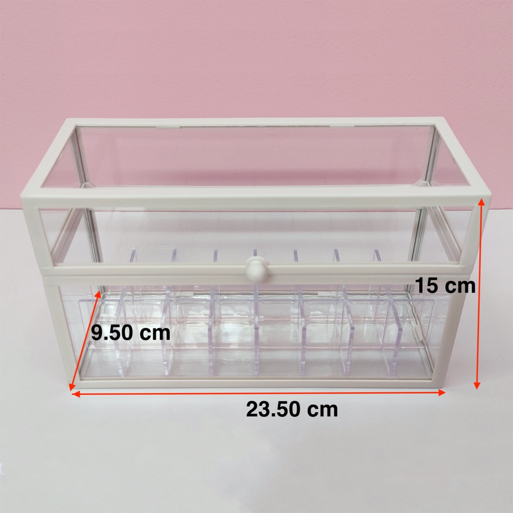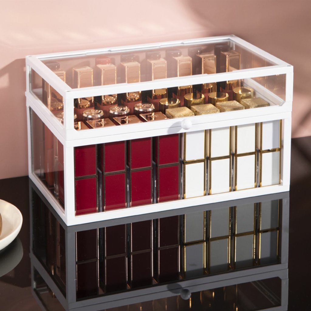 Transparent Organizer Lipstick Box with Lid Arcylic Glass Large Kotak Simpanan Gold White Color Storage Box Wonderful