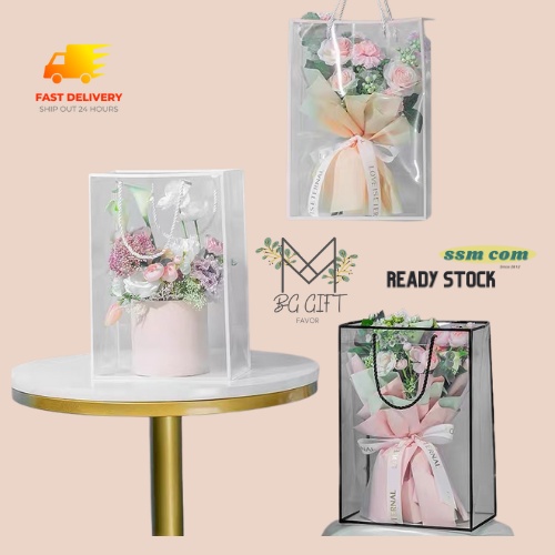 Transparent PVC Gift Bag Paper Beg Hadiah Plastik Lutsinar / Full Transparent Bag with Frame / Bouquet Packaging