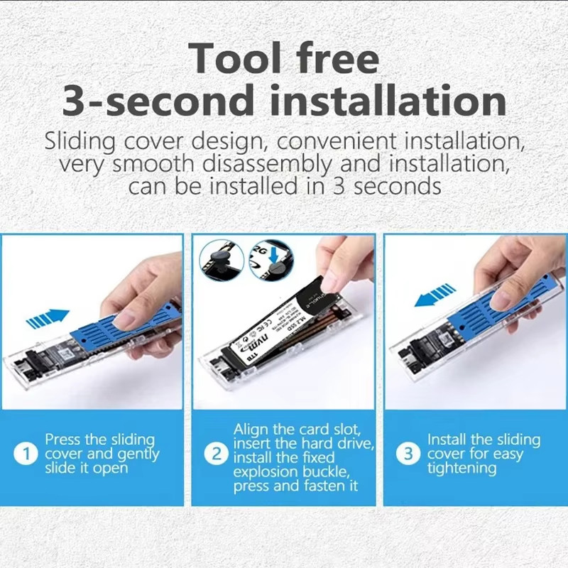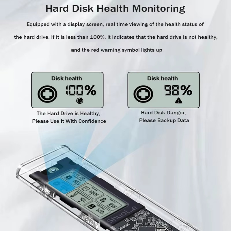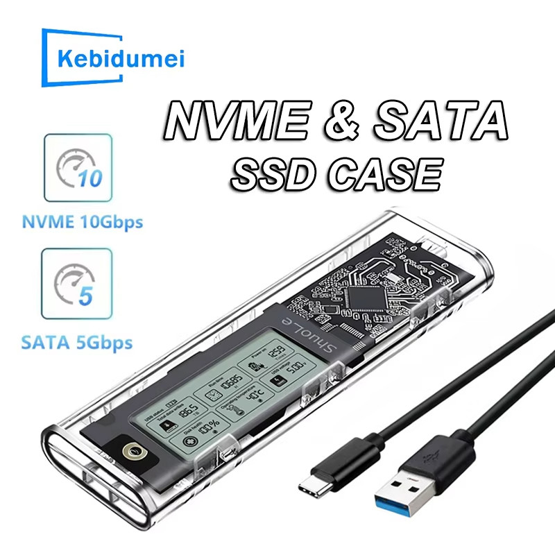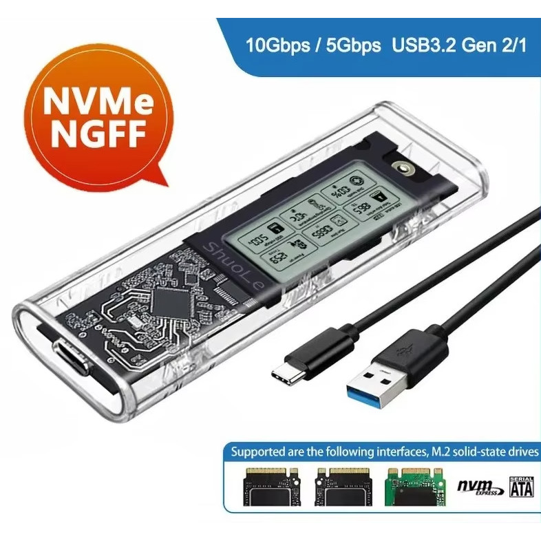 Transparent SSD Enclosure With Smart Display SATA SSD Adapter USB 3.2 Type C M.2 NVcloser/NGFF Tourist Protocol