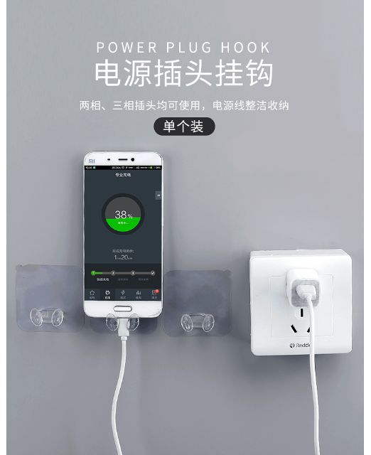 Transparent strong seamless plug hook storage sticky hook socket electrical wire plug bracket data line hook.( 1013 )
