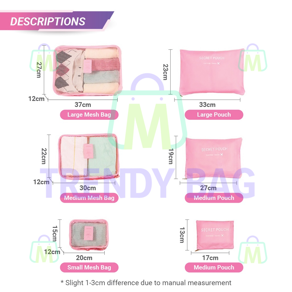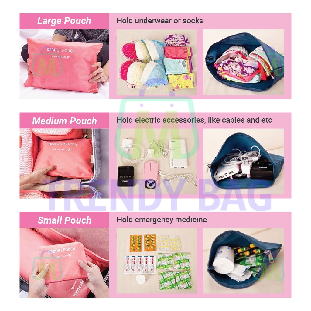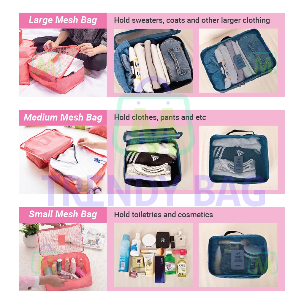 Travel Extra Large Type 6 in 1 Set Travel Organizer Bag Travel Packing Clothes Storage Pouch