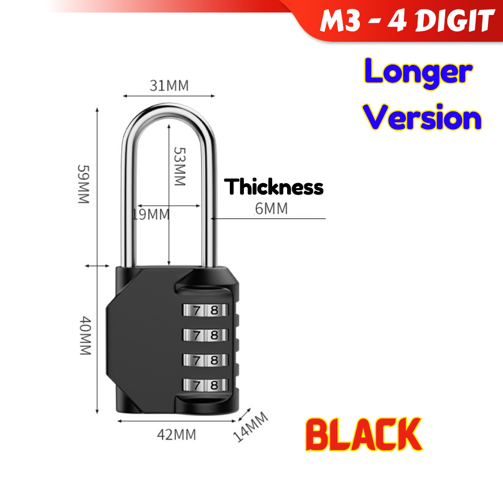 Travel Padlock Zinc Alloy Password Lock Luggage Bag Kunci Locker 4 Digits 3 Digit