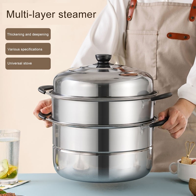 3 Layers Hot Pot Steamer Soup Stainless Steel Cookware Steam Pot Multi-layer thick steamed Layer Pot