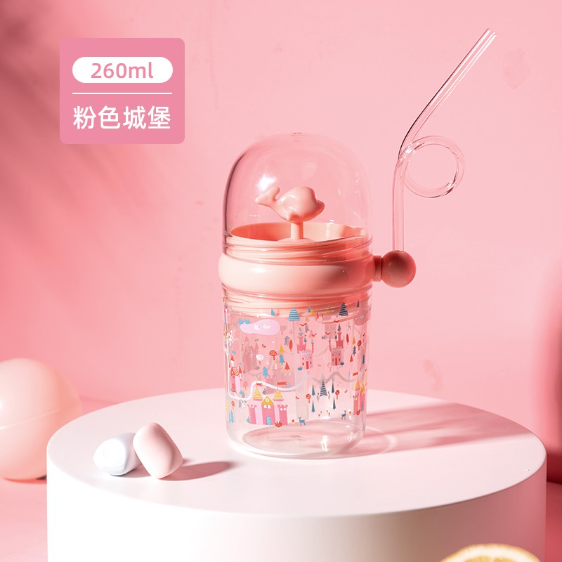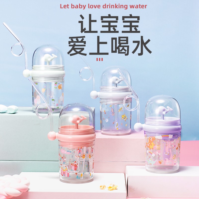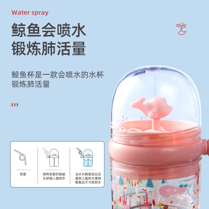 Whale Spray Suction Cup Windmill Cup Cute Children's Plastic Cup with Scale, Anti Falling Portable Creative Water Cup