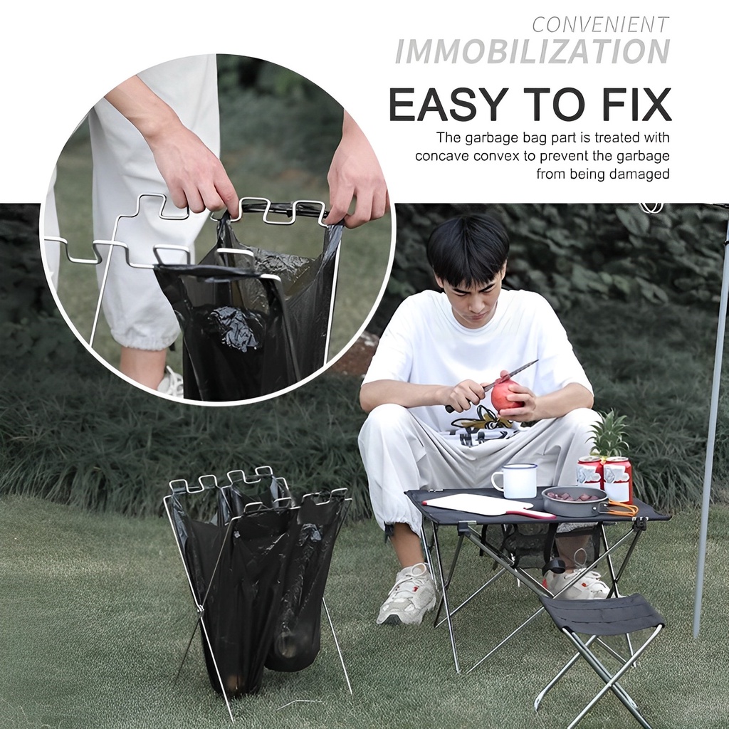 Tree and Sun Outdoor Portable Stainless Steel Foldable Dustbin Rack