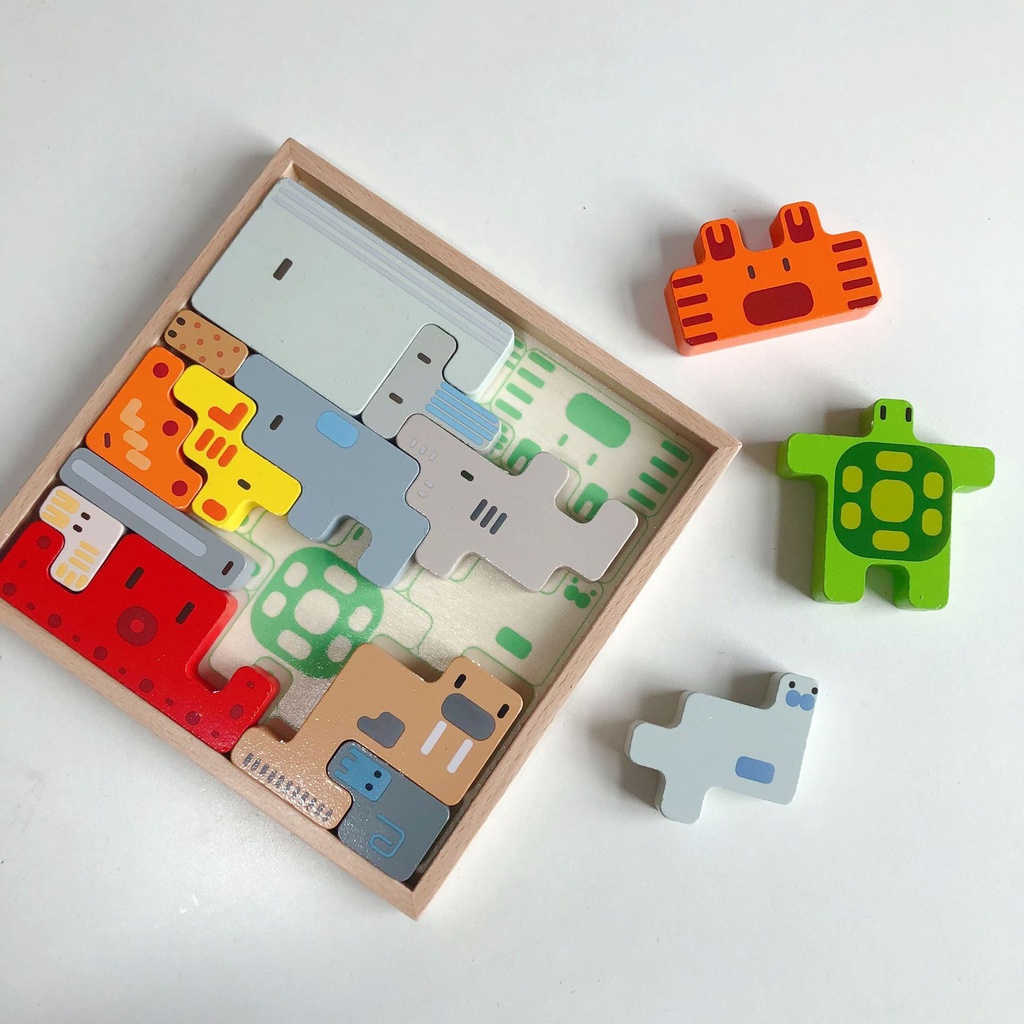 Treeyear Wooden Blocks Brain Teaser Puzzle Game, Intelligence Tangram Jigsaw 3D Russian Blocks Educational MontessoriTo