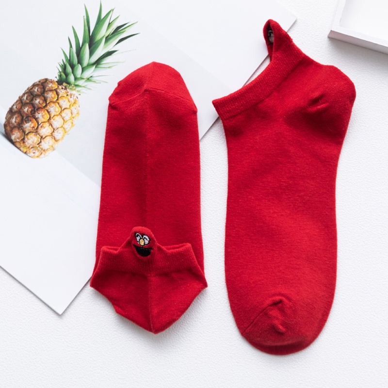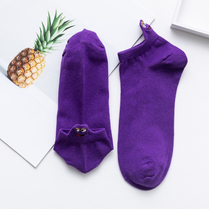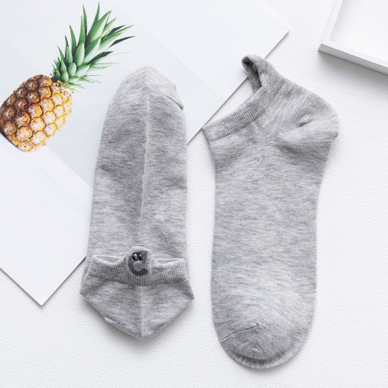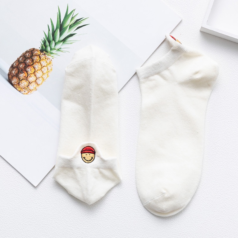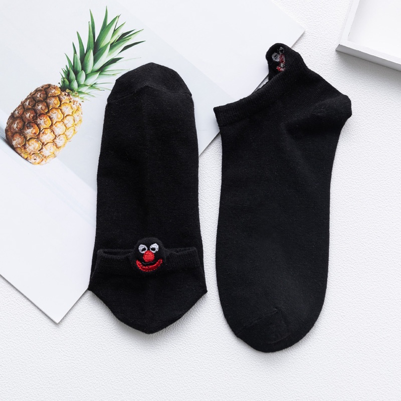 Trendy Funny Socks Cotton Couple Heel Embroidered Socks Cartoon Smiley Eye expression Men and Women Socks Ankle Socks