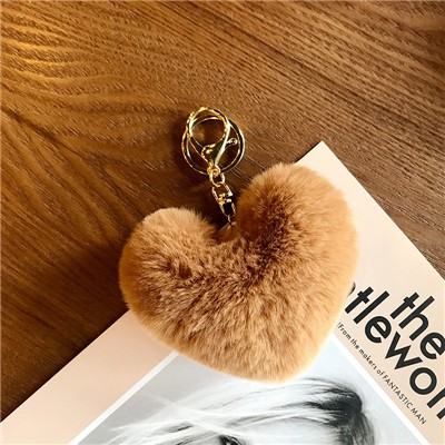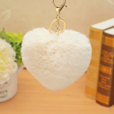 Trendy Heart Ball Pom Pom Keychain Fluffy Faux Rabbit Fur Pompom Key Chains Women Bag Charms Accessories Keyring
