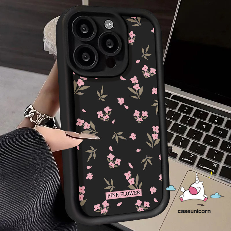 Trendy Pink Fresh Flowers Case for Redmi 12 9 12C 10C 9A 13C 9C NFC 9T 10A A2 A1 Redmi Note 11s 11 8 10s 10 12 9 Pro Max Poco X5 C55 M3 Mi 11 X6 12 Pro Cute Label Angel Eyes Case