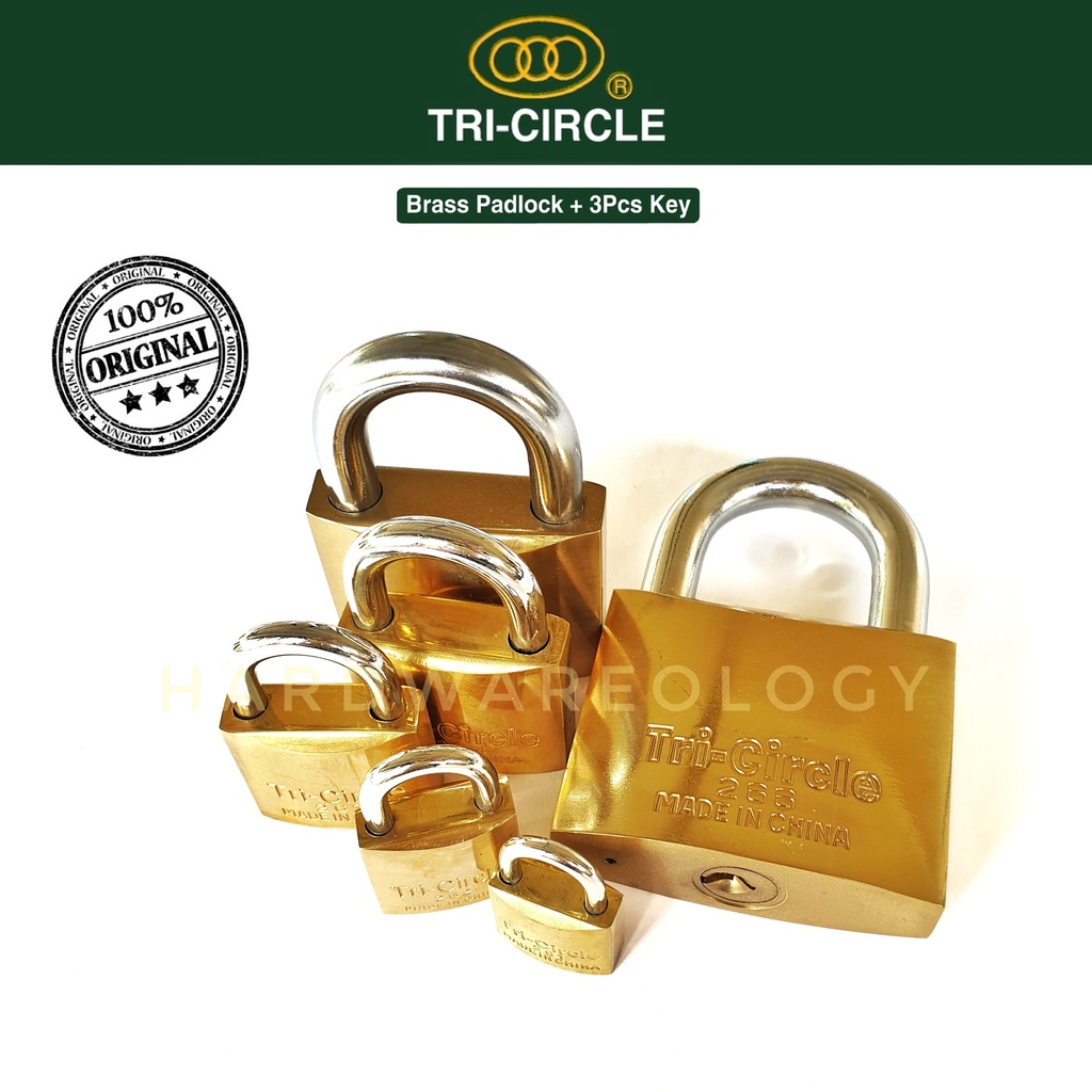 Tri-Circle Brass Pad Lock 20mm 25mm 32mm 38mm 50mm 63mm Tri Circle Padlock Original Heavy Duty